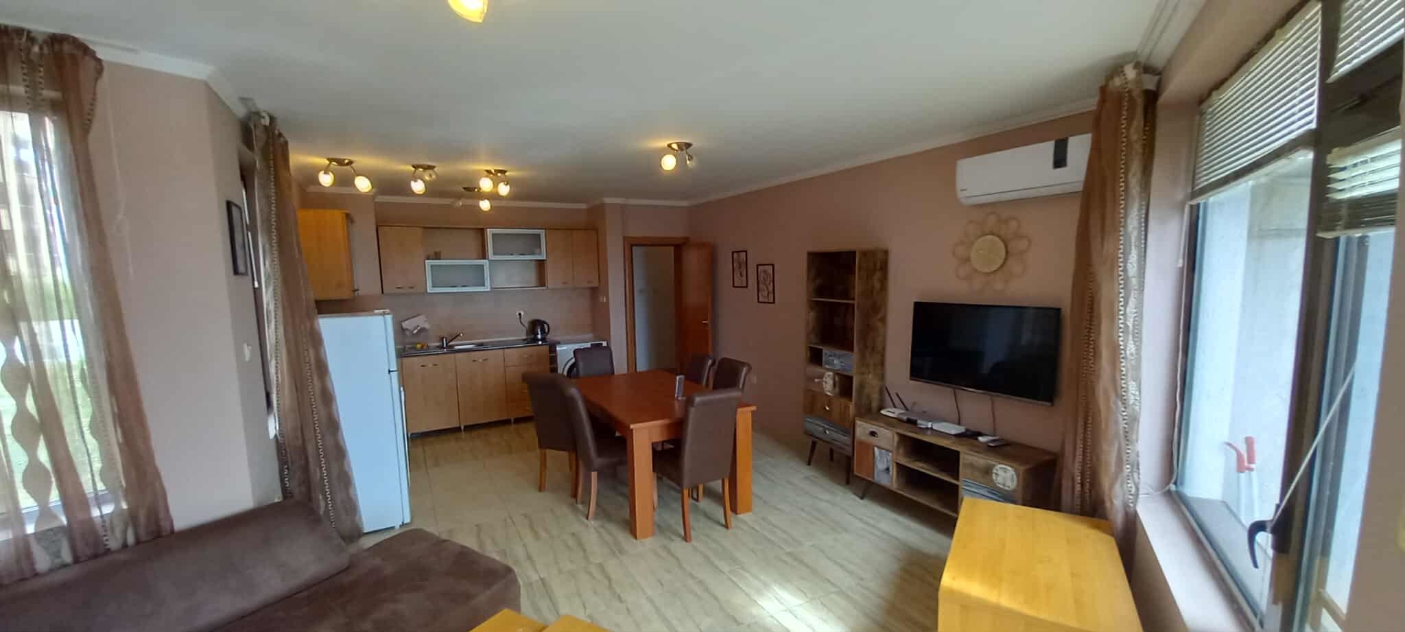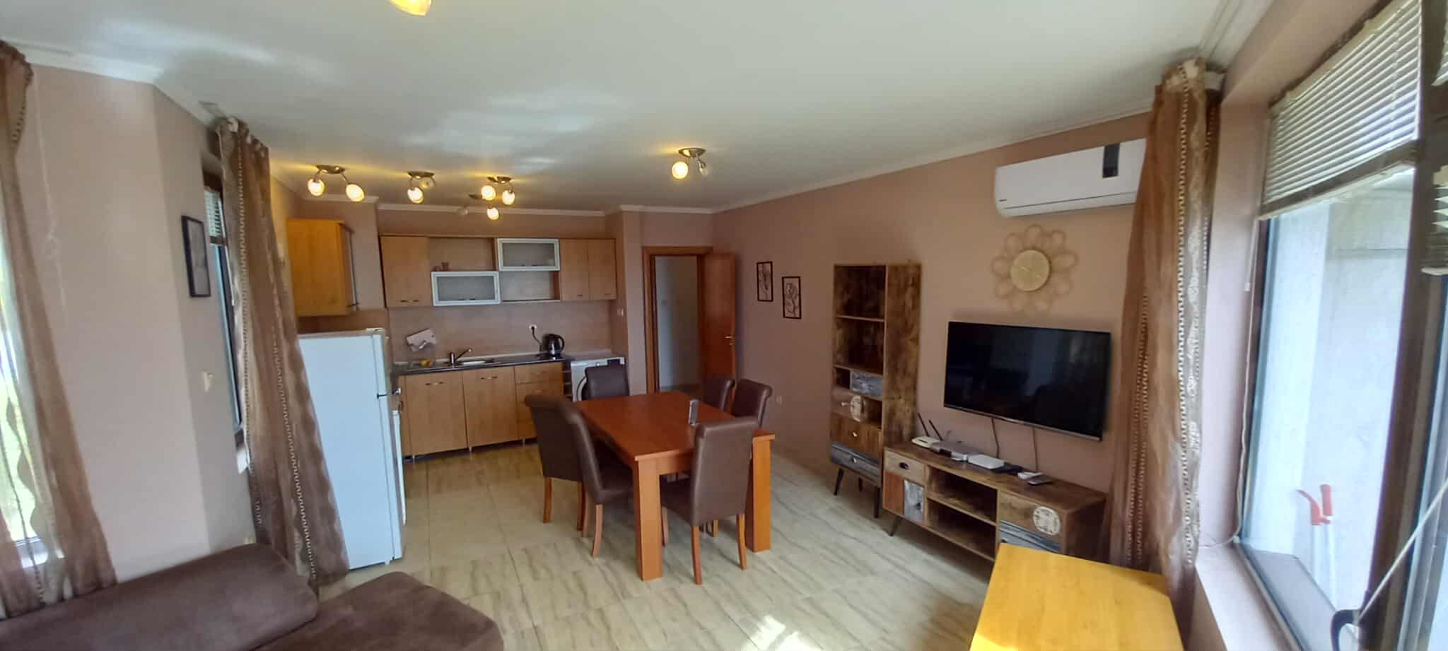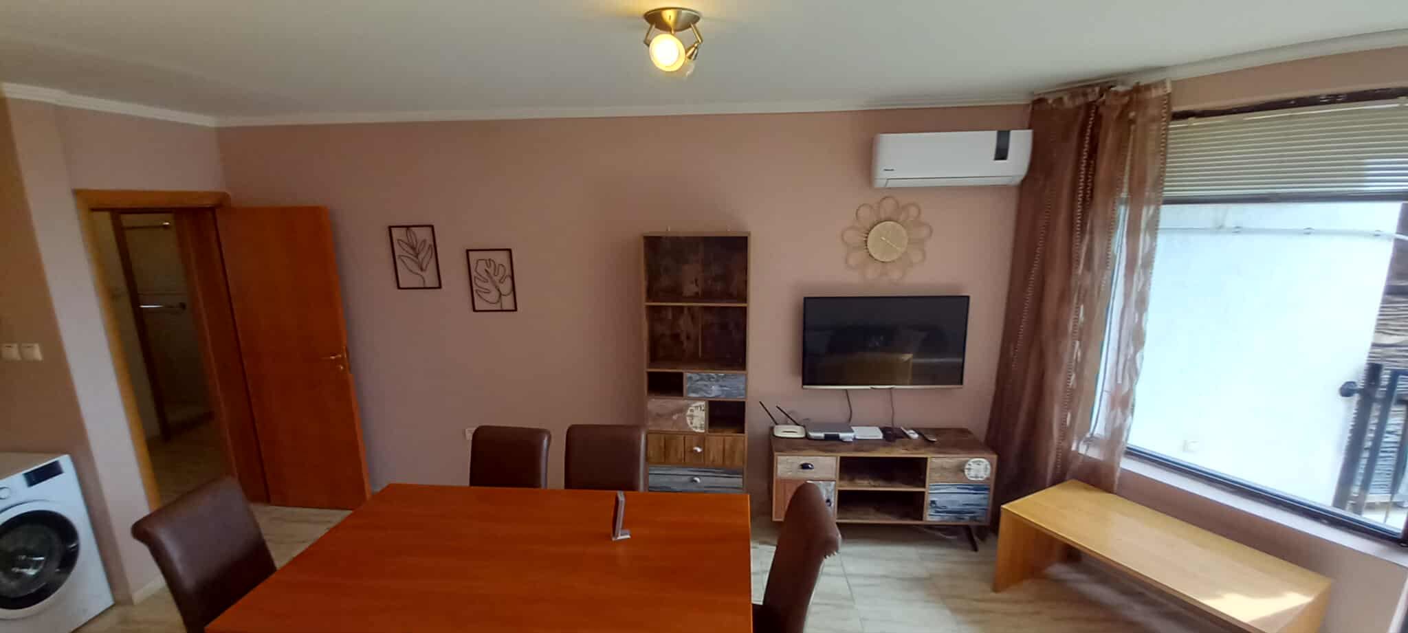 Apartament oferuje funkcjonalny układ pomieszczeń – przestronny salon z miejscem na aneks kuchenny, dwie oddzielne sypialnie, łazienkę oraz osobną toaletę, które zapewniają maksymalny komfort dla całej rodziny. Z okien i balkonu roztacza się piękny widok na morze, dający poczucie przestrzeni i bliskości natury. We wszystkich pokojach zainstalowano nowe klimatyzatory. W kuchni znajduje się nowy sprzęt AGD, w tym zmywarka i lodówka. Na wszystkich oknach zamontowano moskitiery.