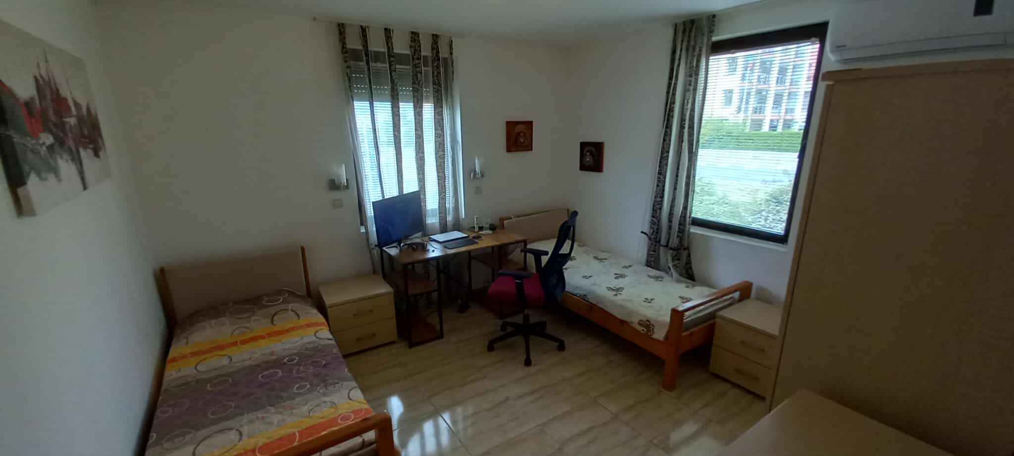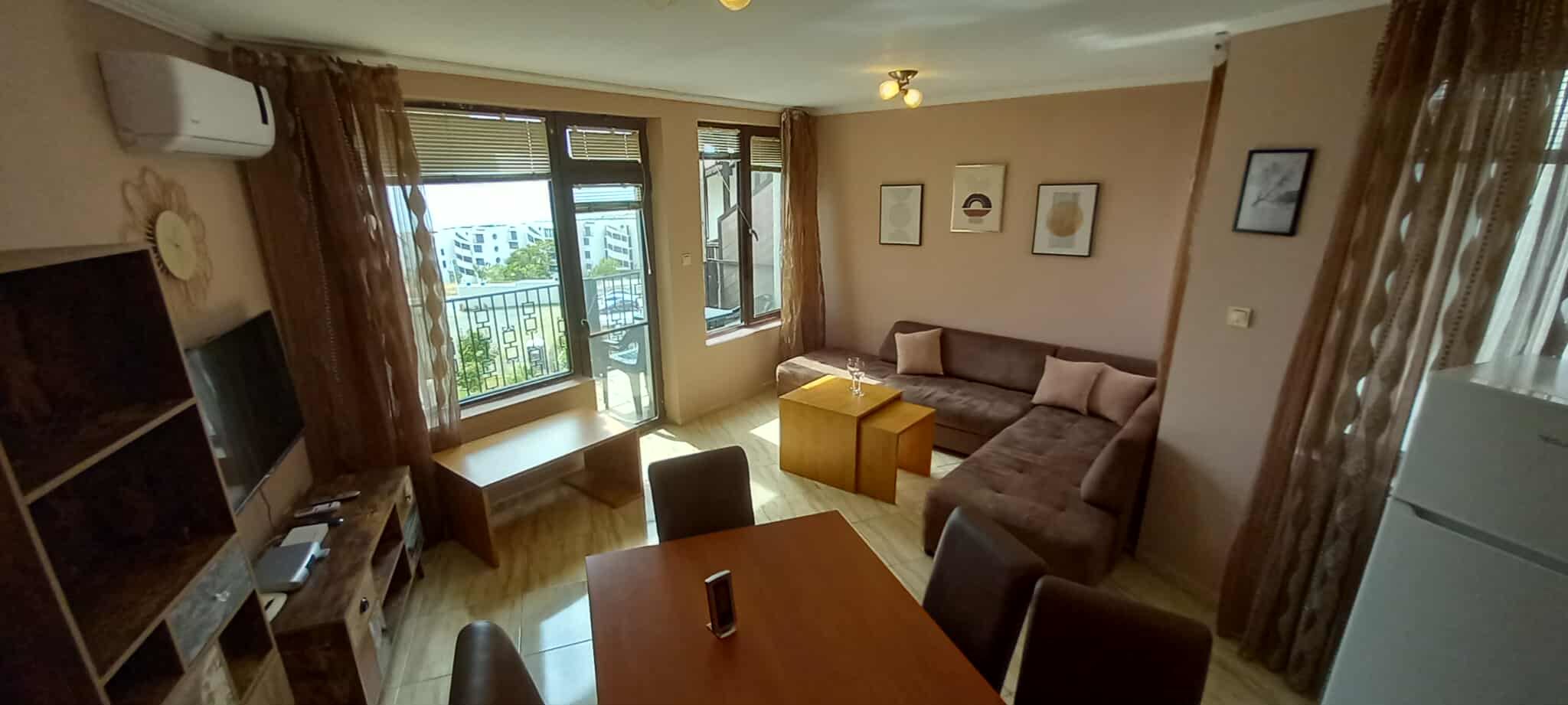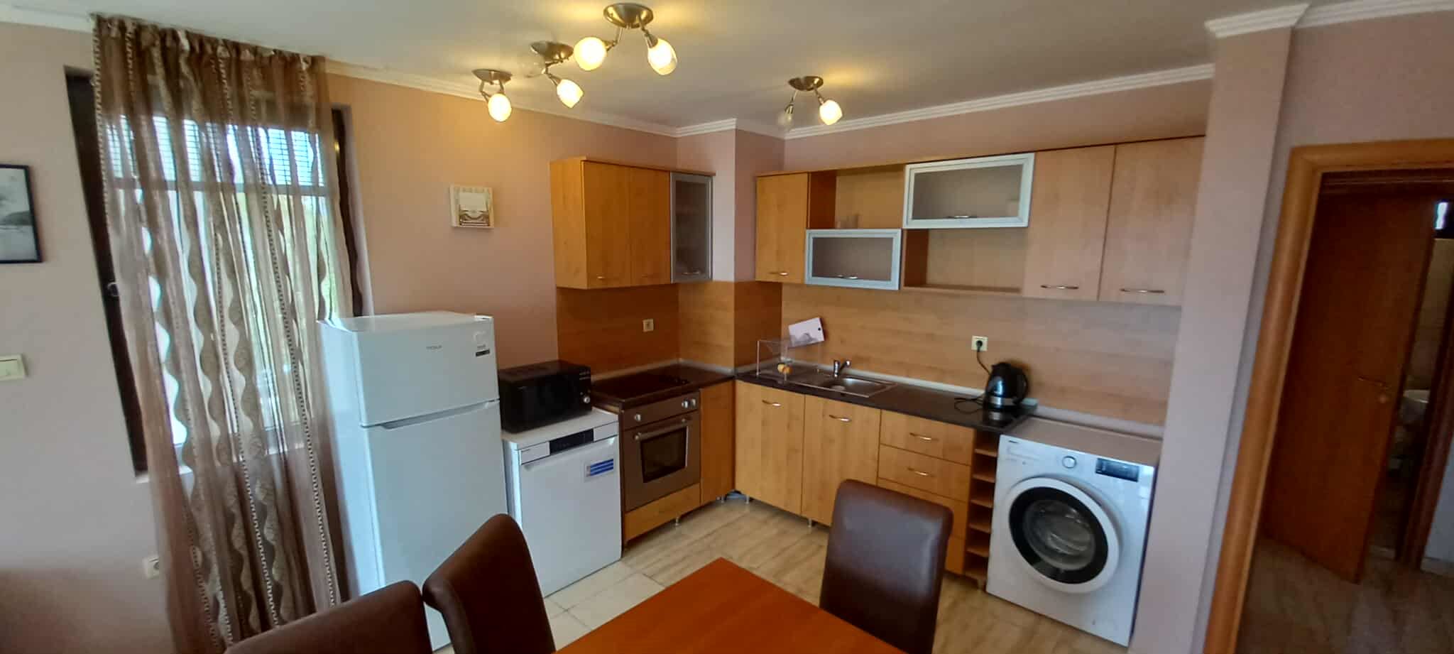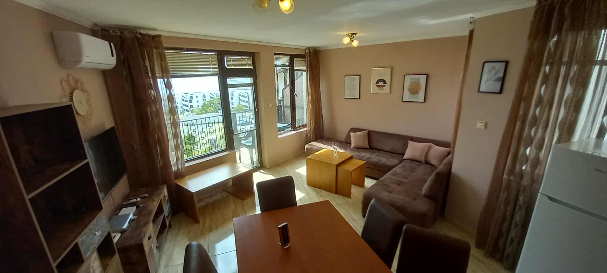 Apartament oferuje funkcjonalny układ pomieszczeń – przestronny salon z miejscem na aneks kuchenny, dwie oddzielne sypialnie, łazienkę oraz osobną toaletę, które zapewniają maksymalny komfort dla całej rodziny. Z okien i balkonu roztacza się piękny widok na morze, dający poczucie przestrzeni i bliskości natury. We wszystkich pokojach zainstalowano nowe klimatyzatory. W kuchni znajduje się nowy sprzęt AGD, w tym zmywarka i lodówka. Na wszystkich oknach zamontowano moskitiery.