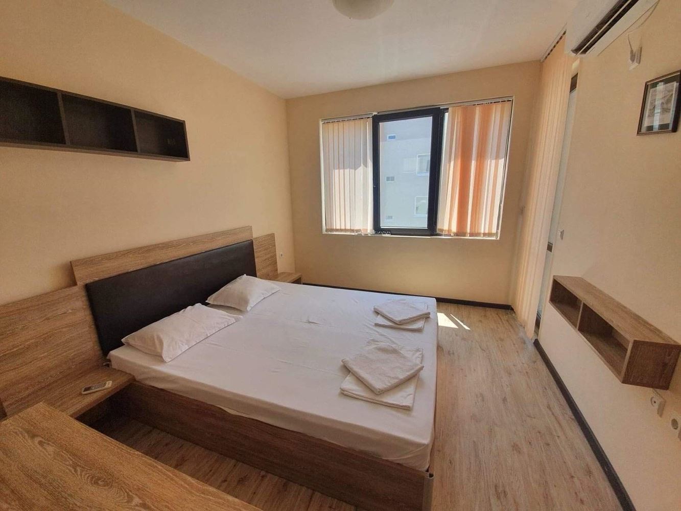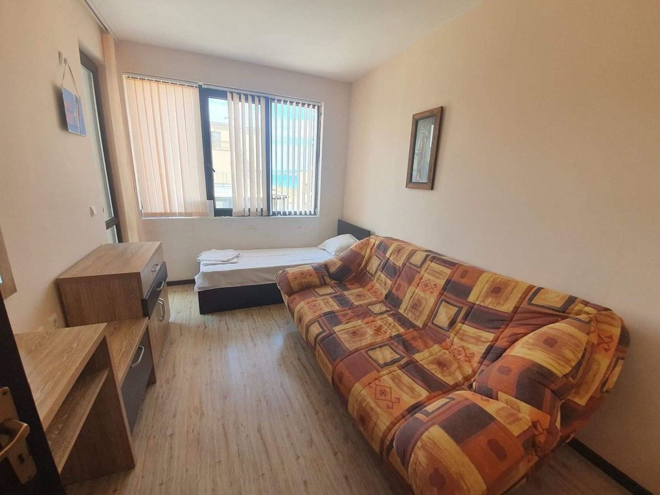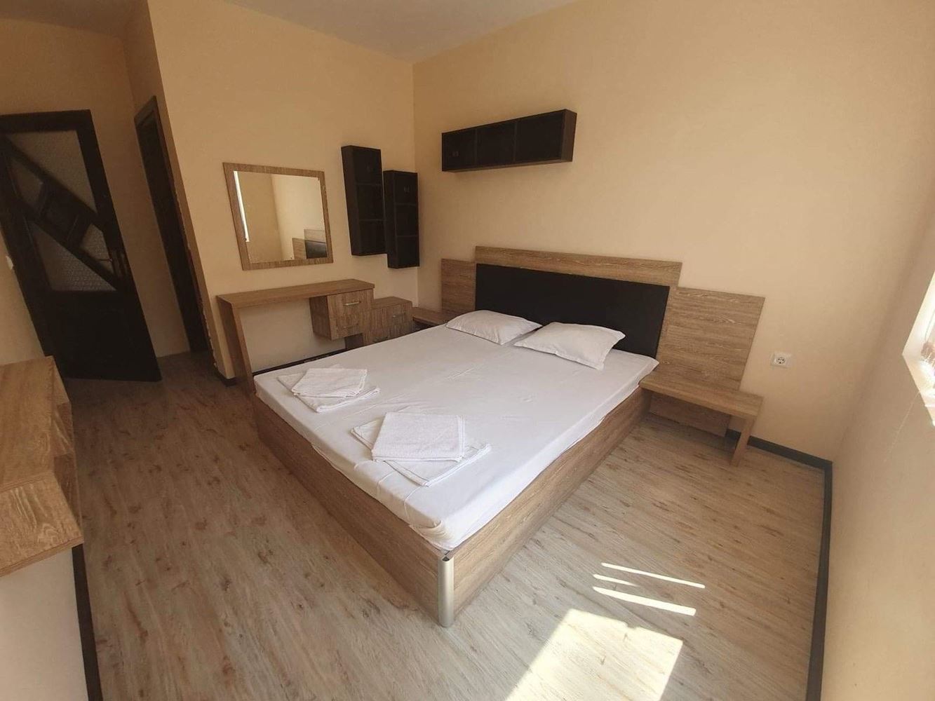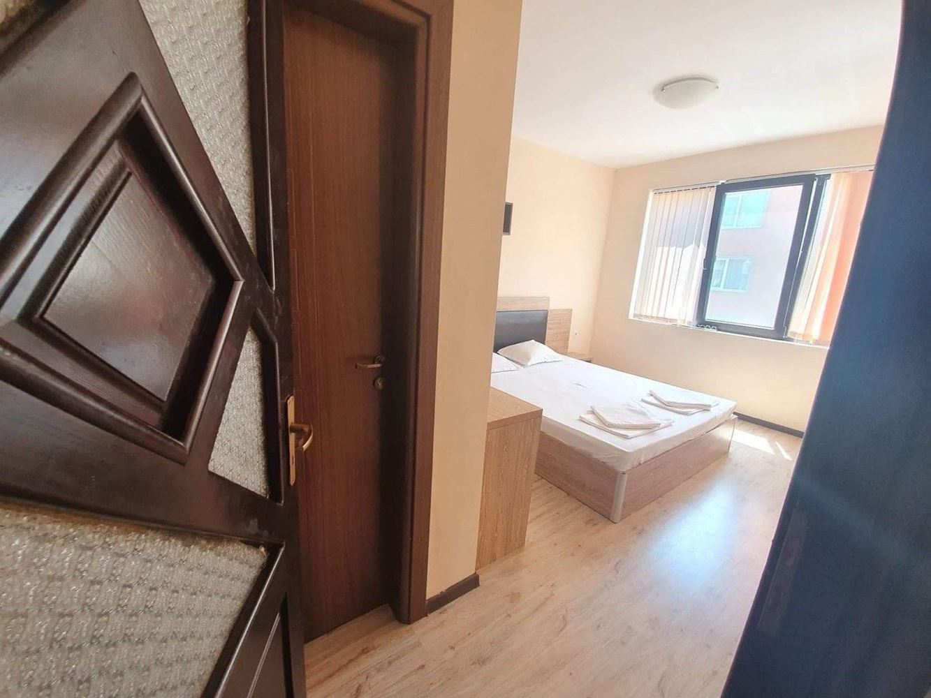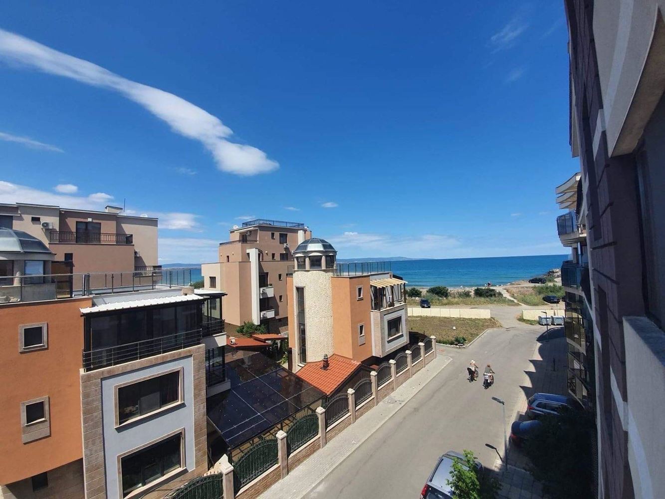Prezentujemy przytulne i jasne trzypokojowe mieszkanie z imponującym widokiem na morze, położone w nowoczesnym budynku z windą w pierwszej linii, w najbardziej malowniczej części Pomorie – Starym Mieście. Nieruchomość ma całkowitą powierzchnię 75 m² i znajduje się na wygodnym trzecim piętrze, łącząc prestiżową lokalizację, funkcjonalny układ i gotowość do natychmiastowego wprowadzenia się. Apartament narożny, z niezależnymi pokojami i południowo-zachodnią ekspozycją, zapewnia mnóstwo naturalnego światła i przyjemne ciepło przez cały rok. Z salonu i obu tarasów roztacza się piękny widok na morze, dający poczucie przestrzeni i spokoju.