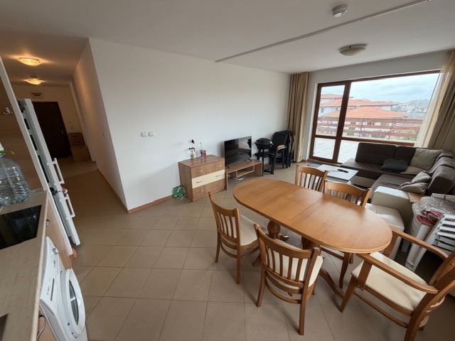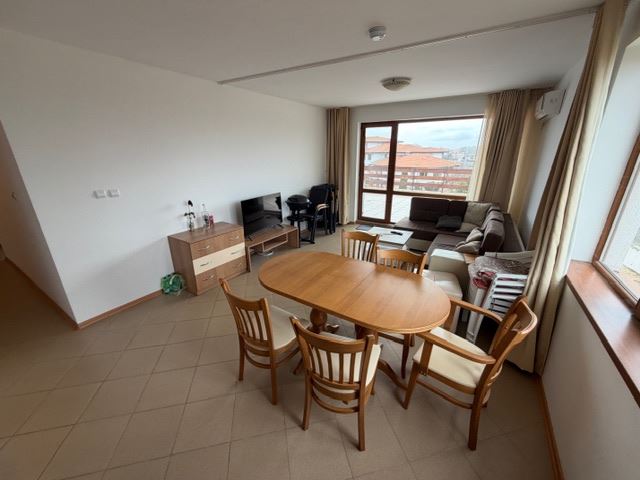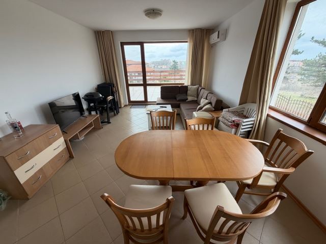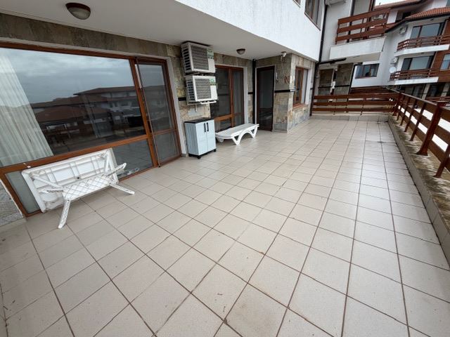 Oferujemy wyjątkowo atrakcyjny apartament z dwiema sypialniami o powierzchni 96.84 m² z ogromnym tarasem, położony na drugim piętrze czteropiętrowego budynku, na obrzeżach Słonecznego Brzegu, w pobliżu hipermarketu Lidl. Nieruchomość łączy przestronność, funkcjonalność i spokojne otoczenie, co czyni ją doskonałym wyborem zarówno do użytku osobistego, jak i jako inwestycję. Apartament jest w pełni umeblowany i gotowy do zamieszkania, co pozwala zaoszczędzić czas i dodatkowe koszty. Układ oferuje wygodę i praktyczność – jasną strefę dzienną z miejscem do wypoczynku i spożywania posiłków, dwie oddzielne sypialnie z bezpośrednim wyjściem na imponujący taras, łazienkę z toaletą. Przestrzeń zewnętrzna jest prawdziwą perłą tej nieruchomości, dając możliwość wydzielenia strefy relaksu, miejsca do grillowania, zewnętrznej jadalni, a nawet jacuzzi. To miejsce, które zamienia każdy letni dzień w przyjemność.