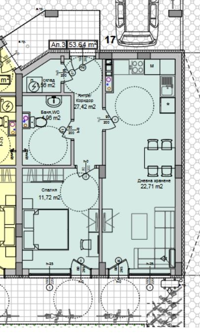 Prezentujemy Państwu niezwykle atrakcyjny apartament z jedną sypialnią, położony w zielonej i luksusowej dzielnicy Sarafovo w Burgas. Ten apartament o łącznej powierzchni 64,20 m² oferuje wyjątkową okazję do wygodnego i nowoczesnego stylu życia. Nieruchomość ma funkcjonalny układ, który obejmuje jasny i przestronny salon ze zintegrowanym aneksem kuchennym, przytulną sypialnię, nowoczesną łazienkę i praktyczną szafę. Z salonu i sypialni będziesz miał bezpośredni dostęp do przestronnego tarasu z widokiem na pięknie zagospodarowany dziedziniec o powierzchni 20 m², który jest do Twojej dyspozycji do prywatnego użytku. Jest to idealne miejsce na relaks na świeżym powietrzu lub zorganizowanie grilla z przyjaciółmi i rodziną.