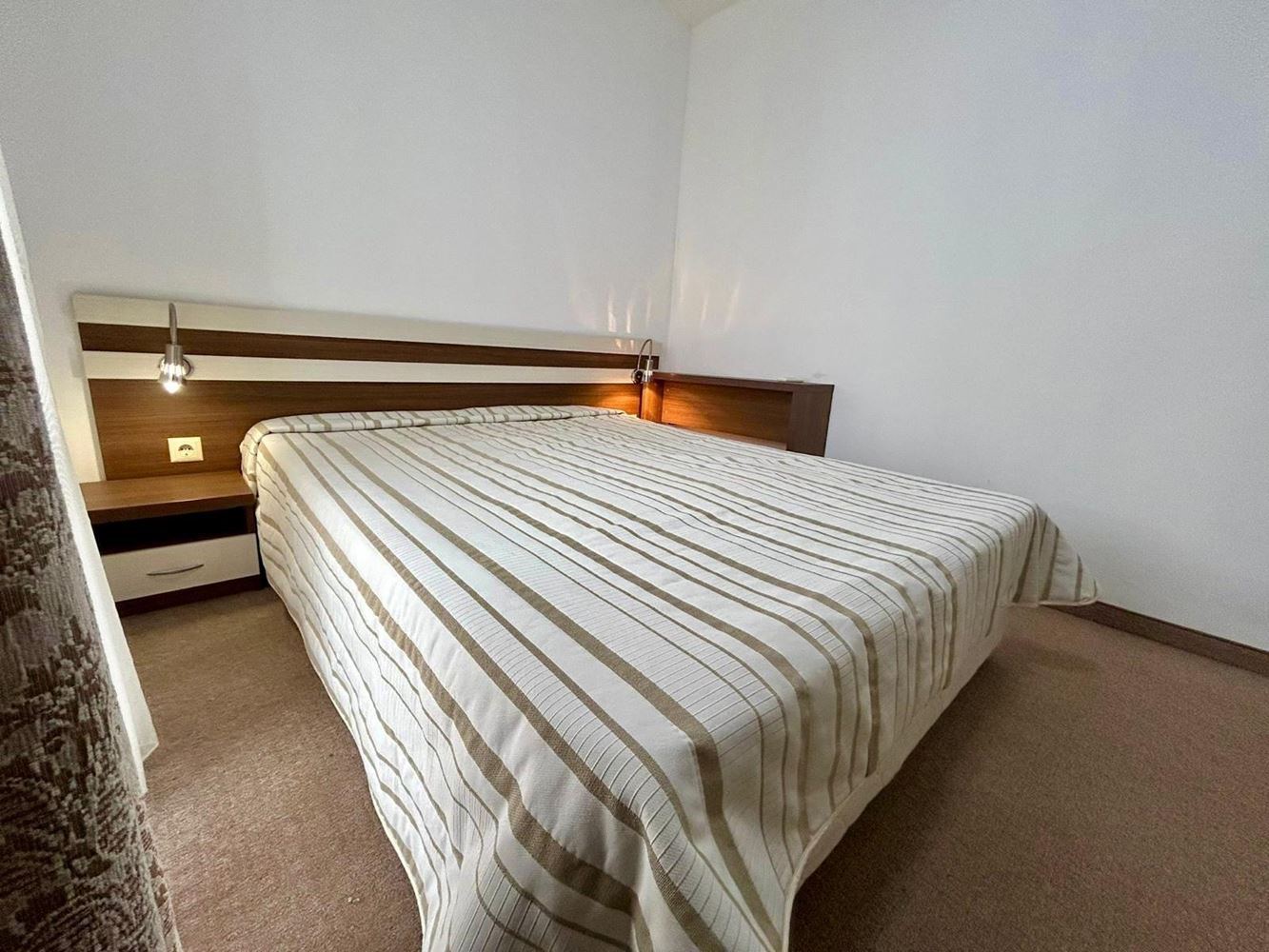 Prezentujemy wyjątkowo przytulne i funkcjonalne mieszkanie dwupokojowe w zamkniętym kompleksie w zielonej i spokojnej części Słonecznego Brzegu. Nieruchomość ma powierzchnię 40 m² i stanowi doskonały wybór do całorocznego mieszkania, wynajmu lub jako inwestycja. Budynek wyposażony jest w windę dla pełnej wygody.