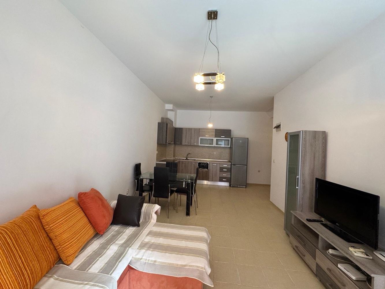 Na sprzedaż oferujemy przestronne mieszkanie dwupokojowe o powierzchni 65 m², położone na parterze budynku mieszkalnego z windą w Pomorie, zaledwie kilka metrów od morza.