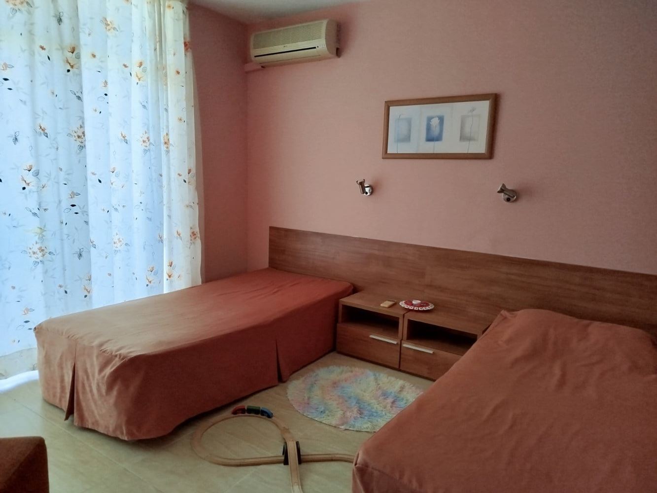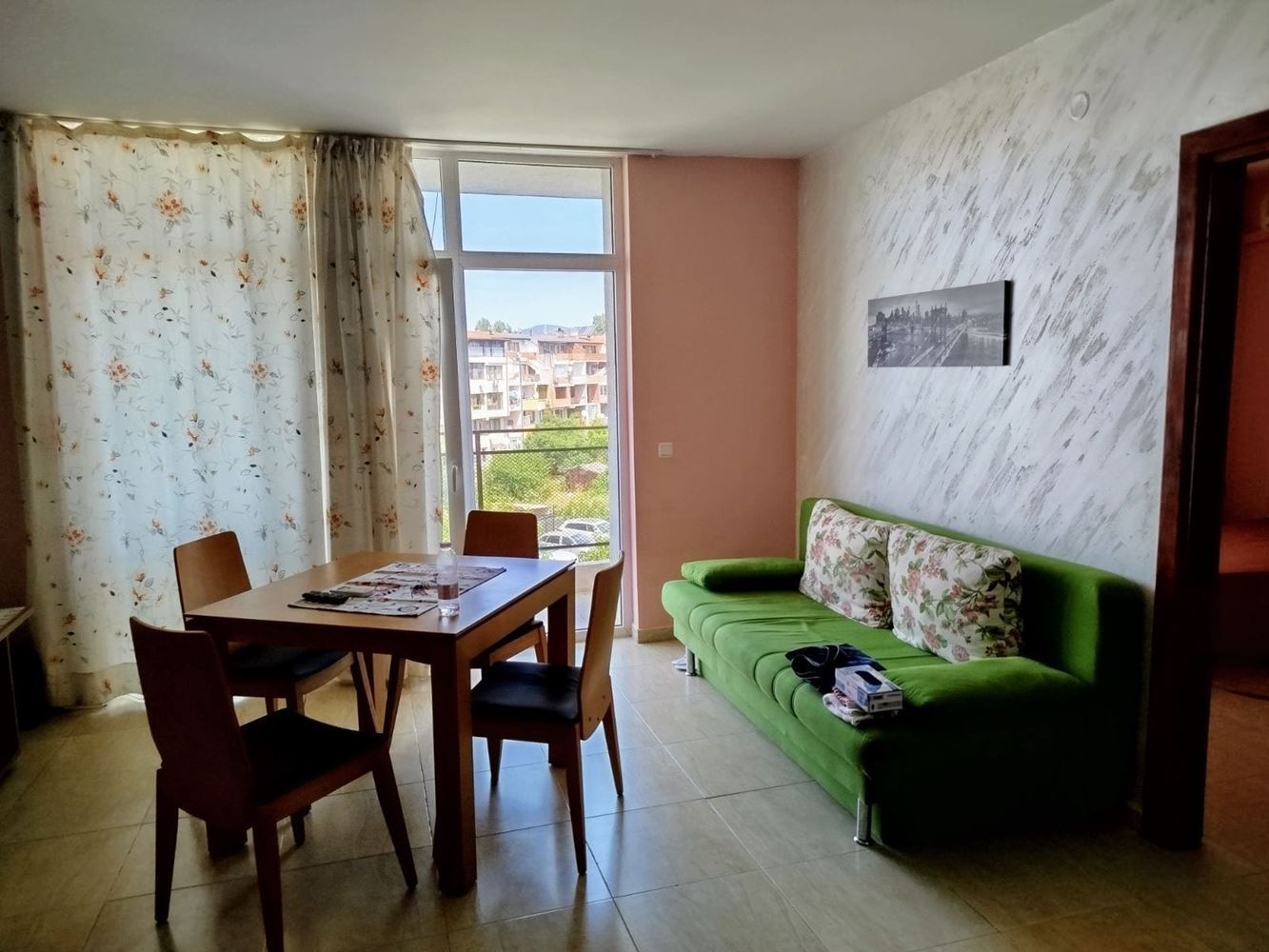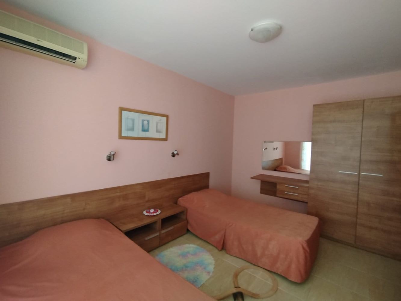 Przedstawiamy dwupokojowe mieszkanie o powierzchni 55 m2, położone na czwartym piętrze sześciopiętrowego budynku z windą, w jednej z najbardziej preferowanych części Słonecznego Brzegu. Lokalizacja jest niezwykle wygodna – w centralnej części kurortu, a jednocześnie w cichym i spokojnym miejscu, co gwarantuje komfort i relaks przez cały rok.