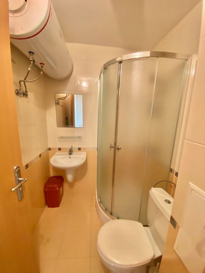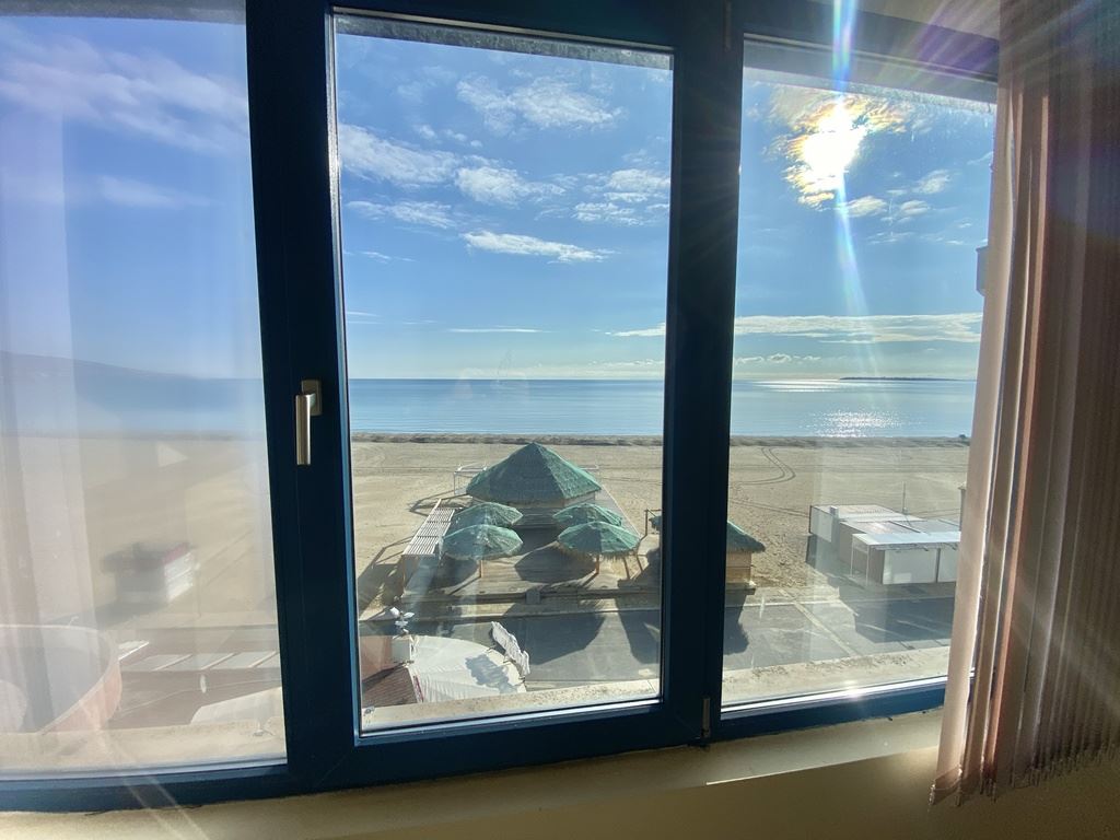Prezentujemy wyjątkową okazję zakupu dwupokojowego mieszkania w pierwszej linii w Sveti Vlas, zaledwie 20 metrów od morza i plaży. Nieruchomość oferuje bezpośredni, panoramiczny widok na morze, zatokę Słonecznego Brzegu, okoliczne góry i miasto – rzadkie połączenie widoków, które daje poczucie przestrzeni i prestiżu. Mieszkanie znajduje się na 5 piętrze budynku z windą i ma powierzchnię 75 m². Orientacja wschodnia zapewnia delikatne poranne światło i chłodne popołudnia – idealne dla komfortowego letniego wypoczynku. Klimatyzacja zapewnia komfort przez cały rok.