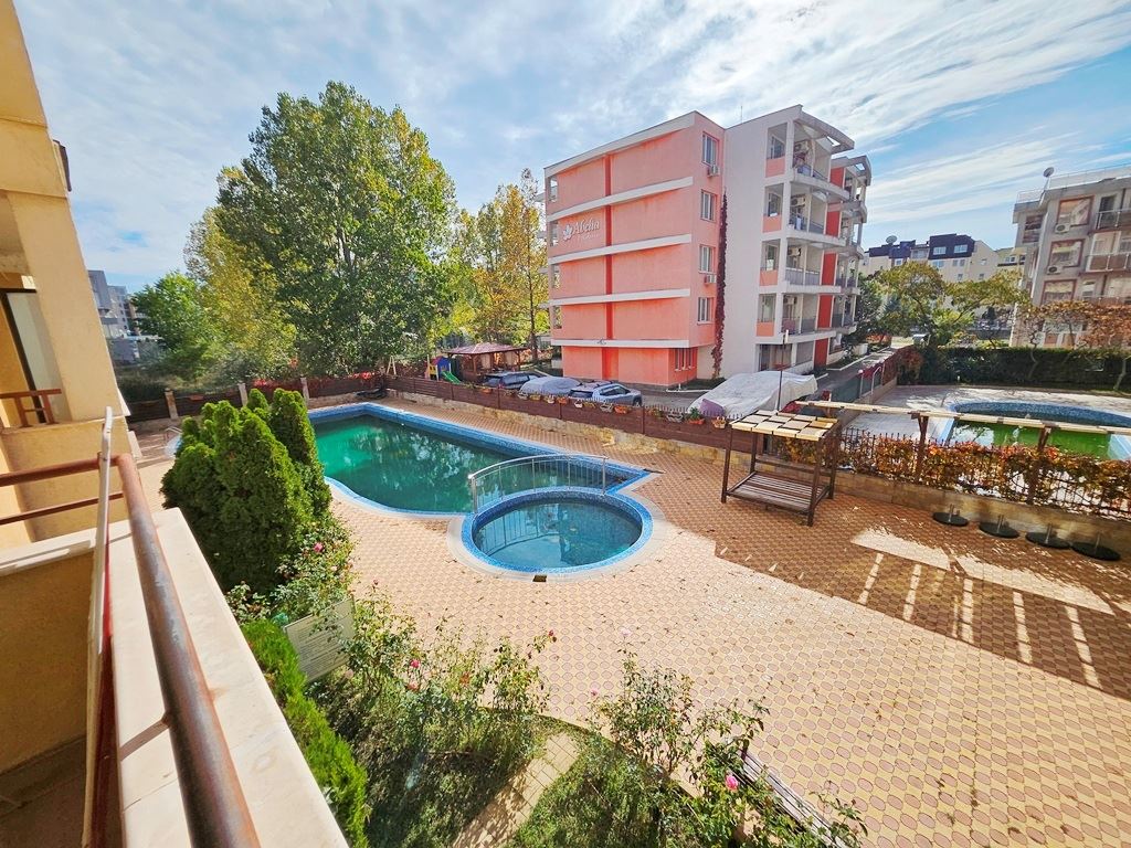 Przedstawiamy przestronne i jasne dwupokojowe mieszkanie z imponującym widokiem na basen, położone na drugim piętrze dobrze utrzymanego kompleksu w Słonecznym Brzegu. Nieruchomość ma całkowitą powierzchnię 87 m² i stanowi doskonały wybór zarówno do zamieszkania, jak i jako bezpieczna inwestycja z potencjałem wynajmu. Budynek posiada windę i całoroczną konserwację, co gwarantuje komfort o każdej porze roku.