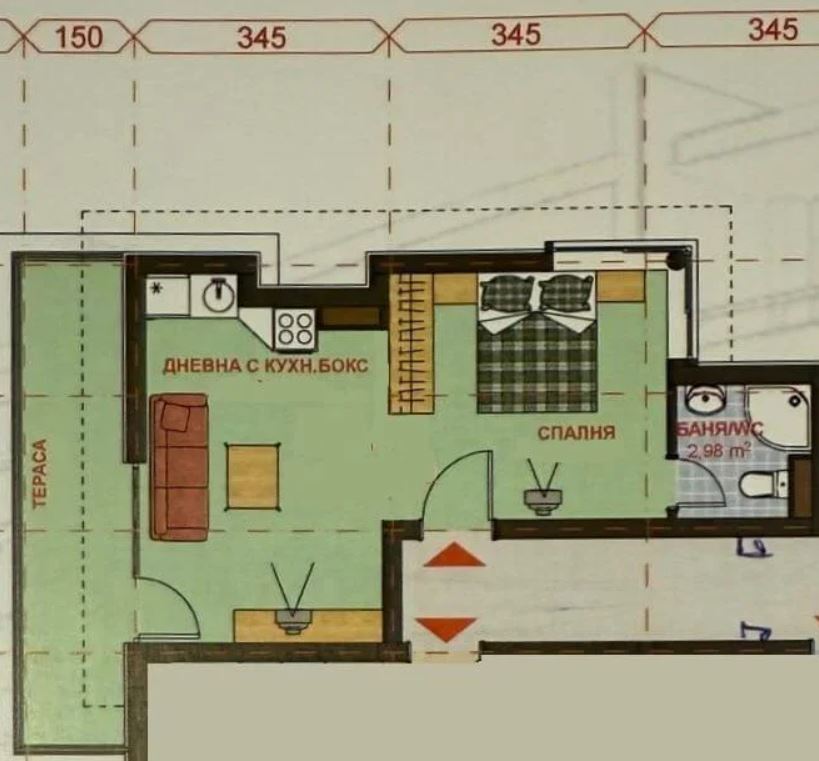 Mieszkanie ma powierzchnię 55 m² i znajduje się na czwartym piętrze w pięciopiętrowym, zadbanym budynku. Lokal oferuje funkcjonalny układ pomieszczeń, który obejmuje jasny salon z aneksem kuchennym i częścią jadalnianą, oddzielną sypialnię, łazienkę oraz taras z przyjemnym widokiem na morze. Przestrzeń została zaprojektowana tak, aby zapewnić komfort zarówno podczas krótkich pobytów, jak i dłuższego zamieszkania.