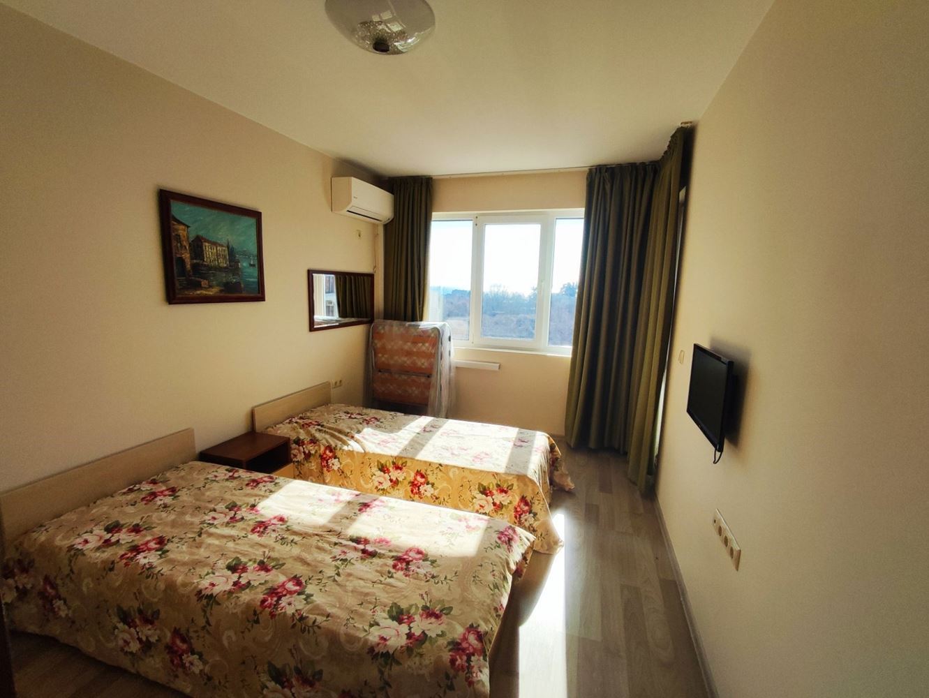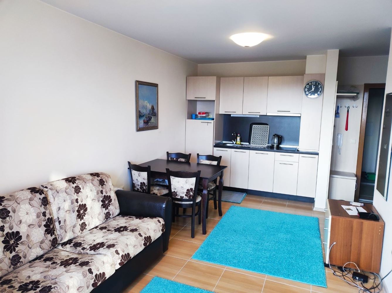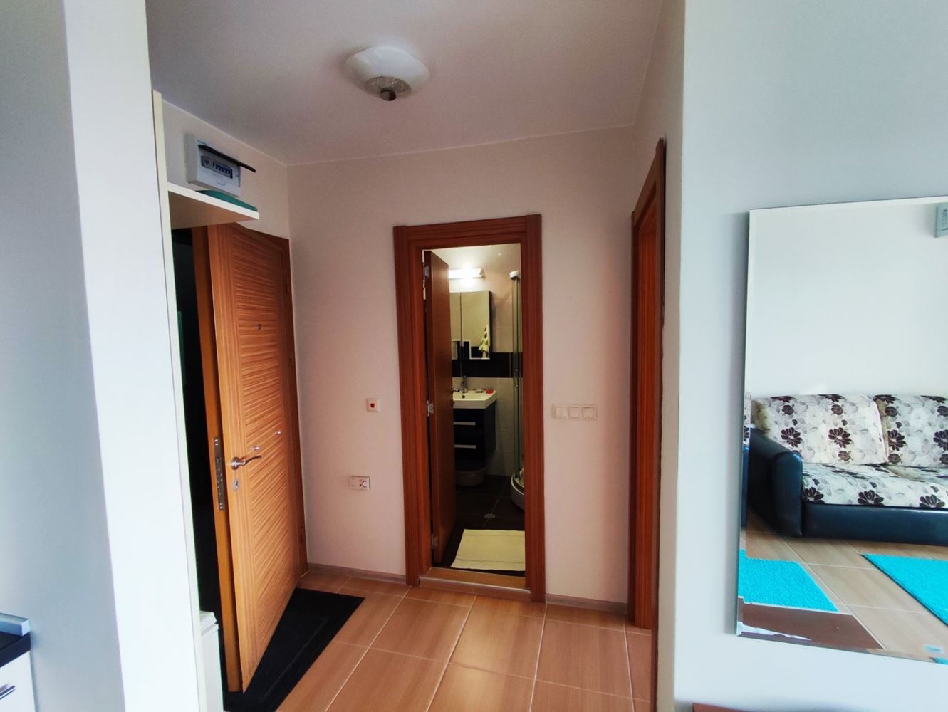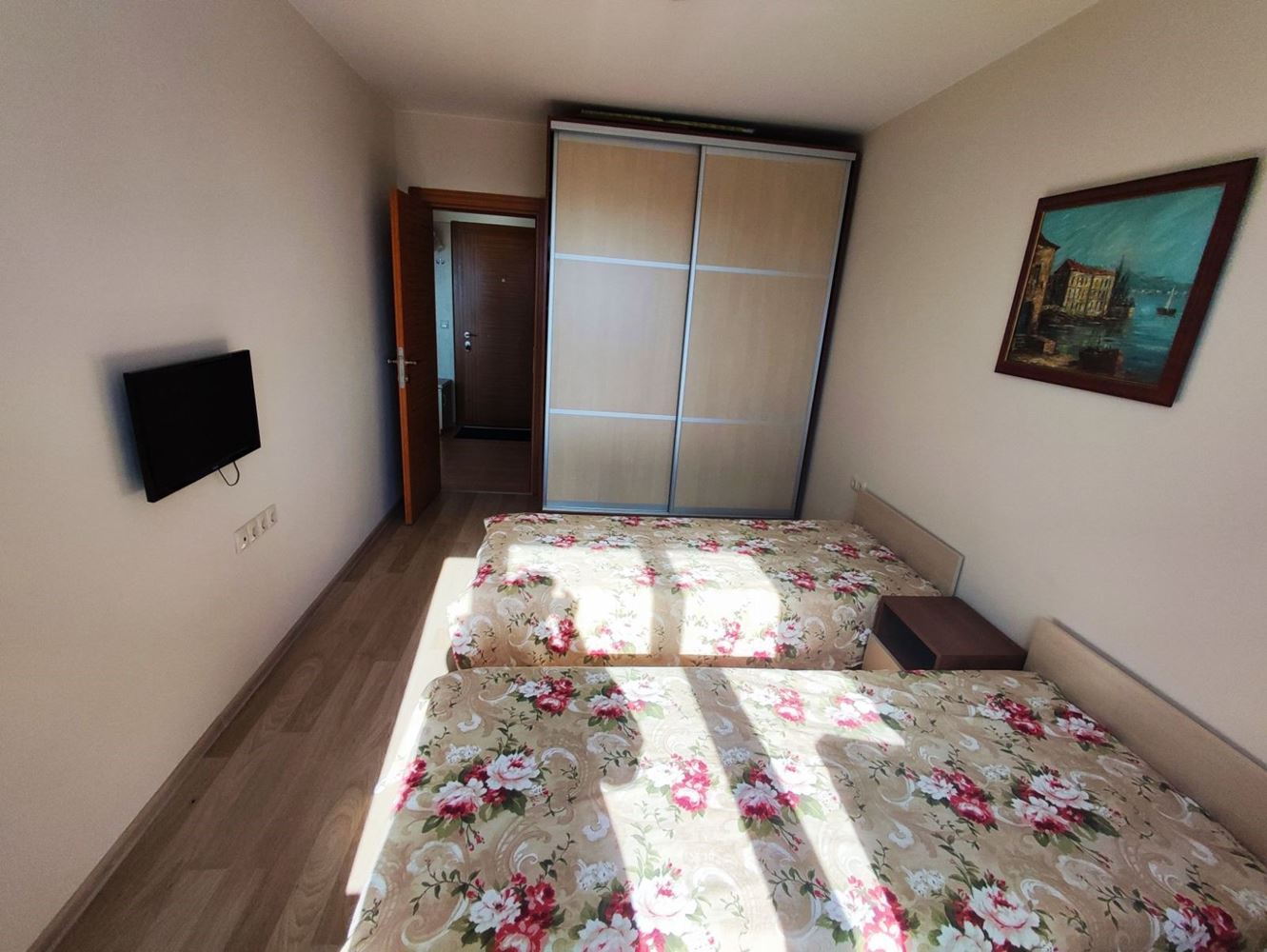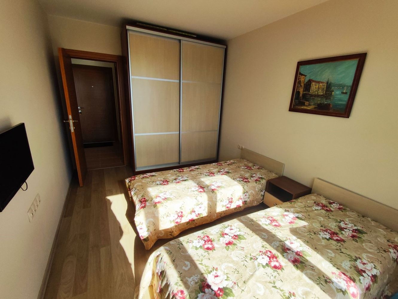 Przedstawiamy dwupokojowe mieszkanie położone w pięknym mieście Nesebyr. Z całkowitą powierzchnią 51 m², ta nieruchomość oferuje komfort i wygodę dla całej rodziny. Mieszkanie wyróżnia się funkcjonalnym układem: jasny salon z aneksem kuchennym i częścią wypoczynkową oraz przestronny taras z widokiem na morze. W pełni umeblowana sypialnia oraz nowoczesna łazienka dodatkowo zwiększają wygodę.