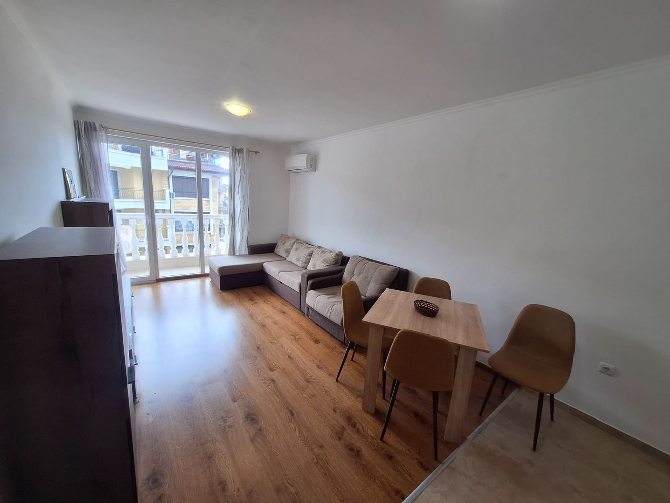 Układ jest funkcjonalny i wygodny do codziennego komfortu: przestronny salon z wydzielonym aneksem kuchennym, jedna osobna sypialnia, łazienka z toaletą oraz słoneczny balkon z przyjemnym widokiem na morze. Wnętrze jest w dobrym stanie – czyste, uporządkowane i przyjazne, z dużą ilością naturalnego światła przez cały dzień.