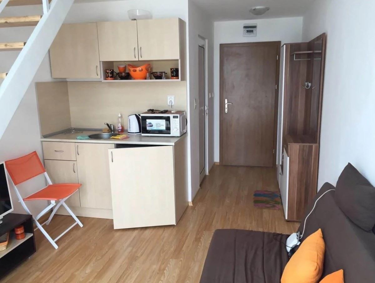 Prezentujemy wyjątkowy apartament typu maisonette o całkowitej powierzchni 40 m2, położony w samym sercu Słonecznego Brzegu – idealny wybór dla osób poszukujących połączenia luksusu, przytulności i funkcjonalności. Mieszkanie jest zaprojektowane na dwóch poziomach, z przestronnym i jasnym pokojem łączącym część dzienną i sypialną, tworząc przestrzeń jednocześnie praktyczną i przyjemną do życia. Balkon daje możliwość relaksu na świeżym powietrzu i podziwiania malowniczej scenerii kompleksu, dodając poczucie wolności i komfortu.