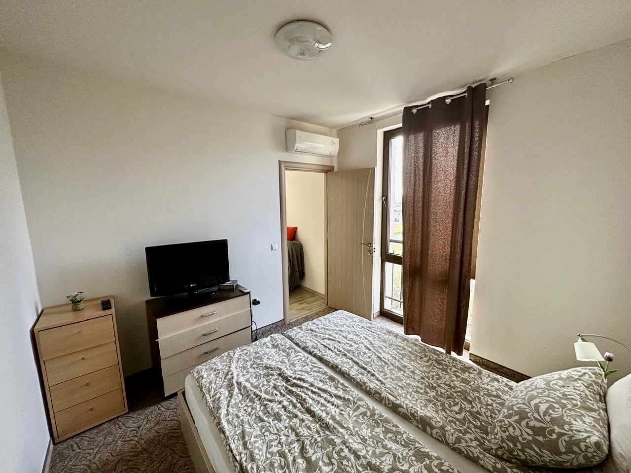 Przedstawiamy Państwu elegancki apartament z jedną sypialnią położony w samym sercu Słonecznego Brzegu - perły bułgarskiego wybrzeża Morza Czarnego. Ta nieruchomość o powierzchni 50 m² łączy w sobie komfort i przytulność z nowoczesnymi udogodnieniami i wykwintnym designem. Apartament znajduje się na trzecim piętrze luksusowego, zamkniętego kompleksu - prawdziwej oazy komfortu i spokoju. Kompleks położony jest wśród pięknej zieleni i oferuje wszelkie warunki do spokojnego wypoczynku i relaksu. Obejmujący dwa przestronne pokoje apartament jest idealny zarówno do użytku prywatnego, jak i inwestycyjnego. Posiada jedną jasną sypialnię, stylową łazienkę ze wszystkimi niezbędnymi udogodnieniami i przytulny balkon, z którego roztacza się wspaniały widok na otaczającą zieleń i spokój kompleksu.