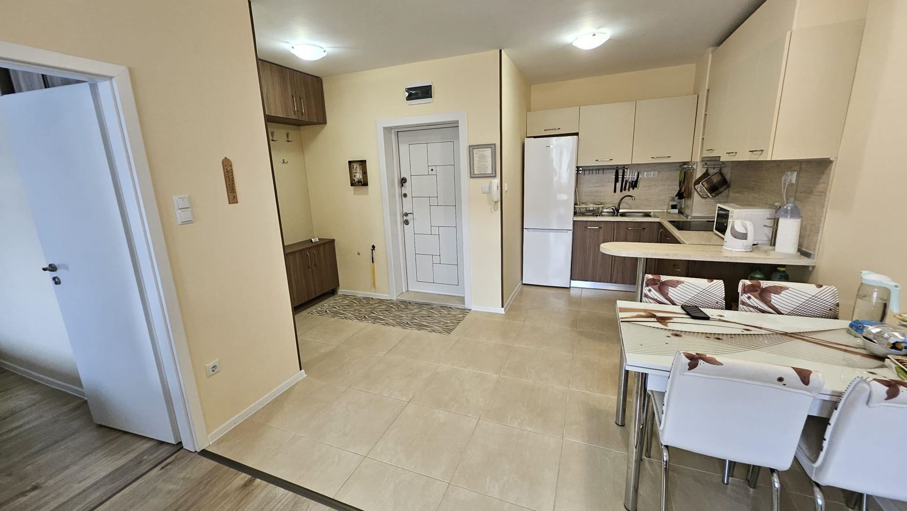 Prezentujemy Państwu wspaniałe dwupokojowe mieszkanie położone w miejscowości Pomorie, zaledwie 200 metrów od morza. O łącznej powierzchni 59,15 m², to mieszkanie na trzecim piętrze oferuje komfort i styl w jednym. Składa się z przestronnego salonu z kuchnią, jednej przytulnej sypialni, łazienki z toaletą oraz balkonu z widokiem na zadbane podwórze, z którego można cieszyć się zarówno porannym słońcem, jak i wieczorną bryzą. Budynek wyposażony jest w nowoczesną windę i posiada Akt 16, gwarantujący bezpieczeństwo i legalność inwestycji.