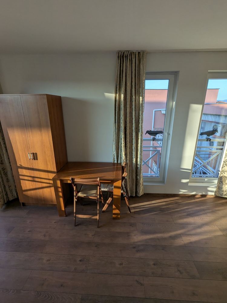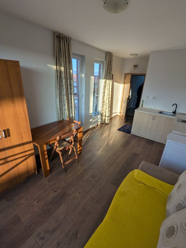Prezentujemy studio o powierzchni 32 m², położone na trzecim piętrze dobrze utrzymanego kompleksu wakacyjnego w Słonecznym Brzegu. Nieruchomość oferuje kompaktową i funkcjonalną przestrzeń, idealną do wakacji, wynajmu lub całorocznego zamieszkania. Studio posiada przestronny salon, aneks kuchenny i łazienkę, łącząc komfort i stylowe umeblowanie, tworząc przyjemną i przytulną atmosferę.