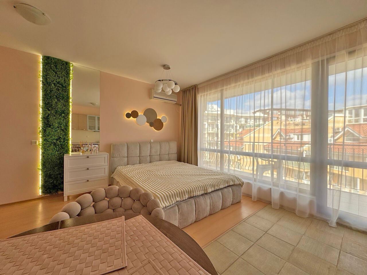 Prezentujemy stylowe studio o powierzchni 40 m², położone na czwartym piętrze nowoczesnego kompleksu w Słonecznym Brzegu, zaledwie 400 metrów od plaży. Mieszkanie jest w pełni umeblowane, z funkcjonalnym układem, zapewniającym jasne i przytulne pomieszczenia, idealne jako dom wakacyjny, na wynajem lub jako inwestycja. Przestrzeń została zaprojektowana tak, aby zapewnić komfort i praktyczność, a jednocześnie umożliwia personalizację według własnych potrzeb.