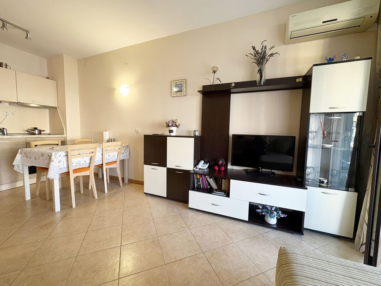 O powierzchni 49 metrów kwadratowych, apartament ten znajduje się na parterze i oferuje wspaniały taras z wyjściem na dziedziniec i basen, co dodatkowo potęguje wrażenie wypoczynku nad morzem. Mieszkanie jest w pełni umeblowane, dzięki czemu można się do niego wprowadzić natychmiast po zakupie.