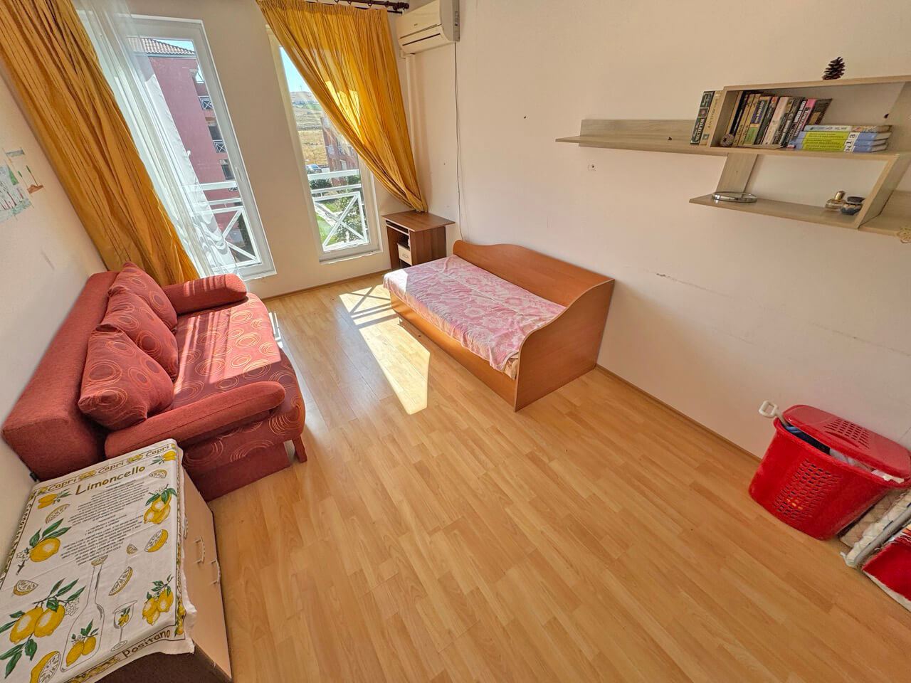 Przedstawiamy jasne i przytulne studio położone na czwartym, ostatnim piętrze doskonale utrzymanego kompleksu mieszkalnego w okolicy Słonecznego Brzegu. Nieruchomość stanowi idealny wybór dla osób poszukujących komfortu i spokoju w jednym z najpopularniejszych nadmorskich kurortów w Bułgarii, bez rezygnacji z wygody i dostępu do infrastruktury miejskiej. Studio ma łączną powierzchnię 34 m² i oferuje funkcjonalny układ z 1 pokojem i 1 łazienką. Ostatnie piętro zapewnia więcej ciszy i prywatności oraz przyjemne, naturalne światło przez cały dzień. Przestrzeń pozwala na naturalne wydzielenie strefy sypialnej, wypoczynkowej i kompaktowego aneksu kuchennego – zgodnie z potrzebami nowego właściciela. Nadaje się zarówno do zamieszkania na stałe, jak i do wypoczynku wakacyjnego.