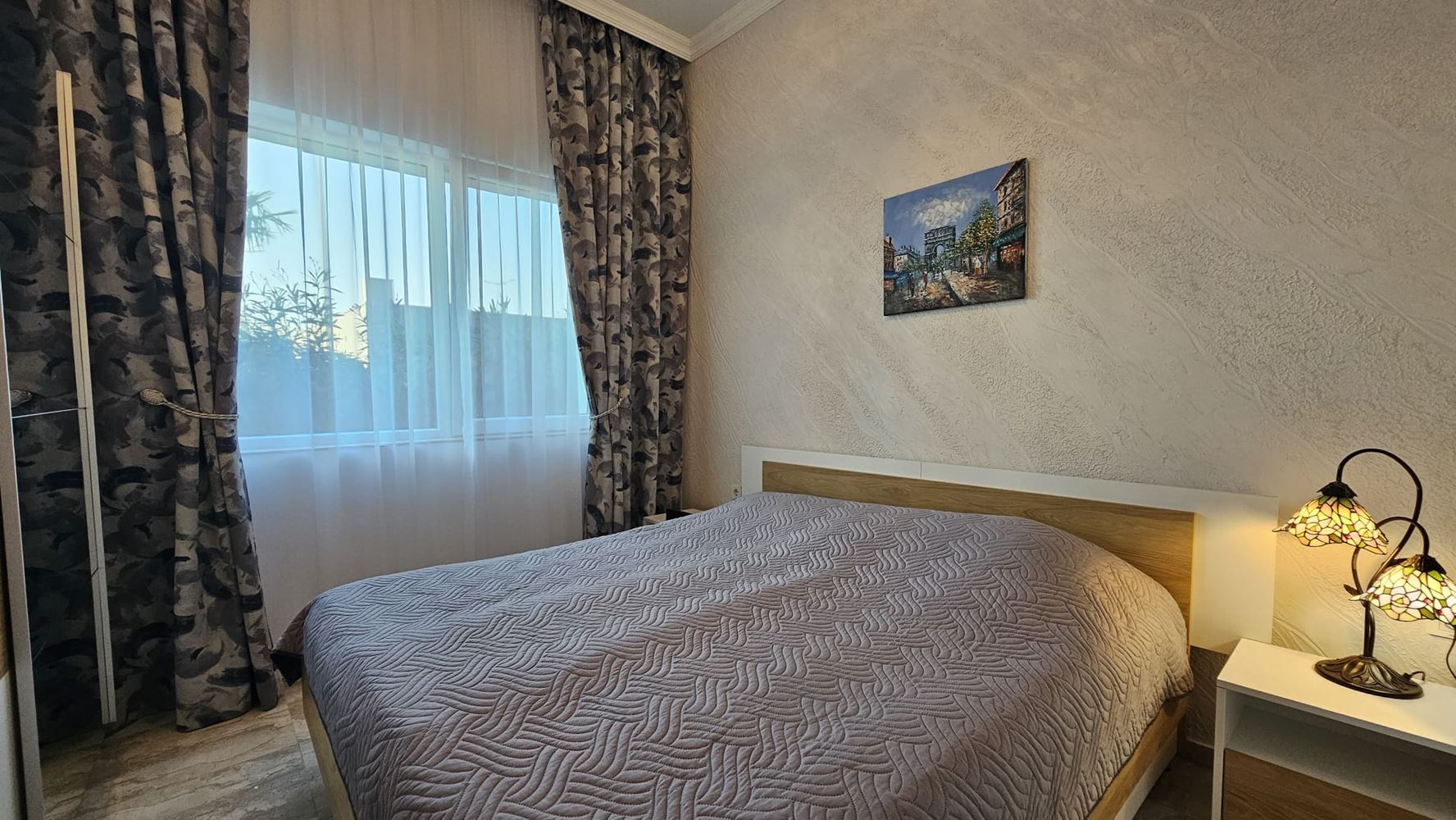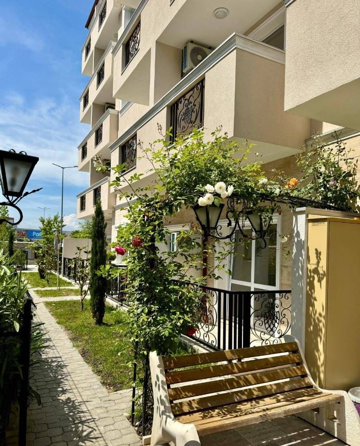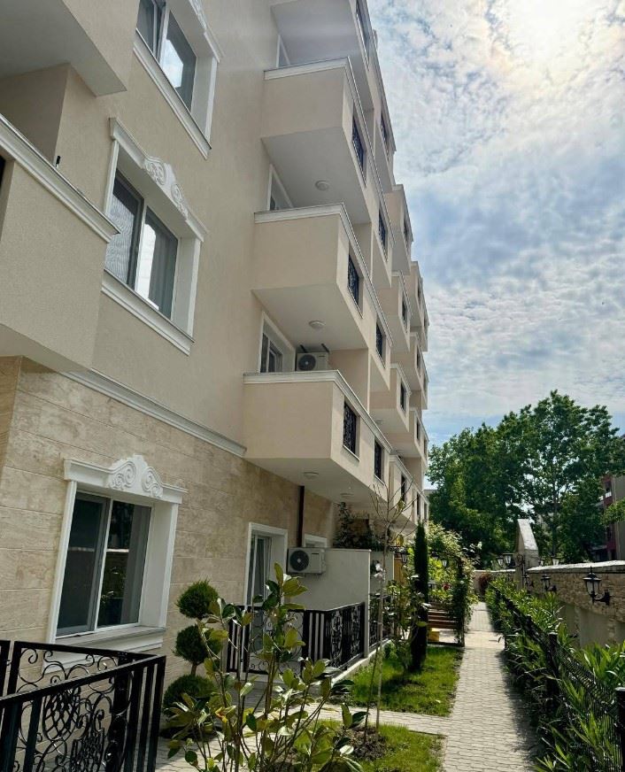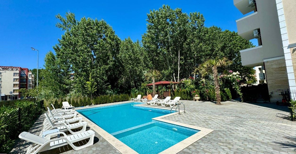 Oferujemy na sprzedaż przytulne dwupokojowe mieszkanie na parterze w prestiżowym kompleksie w Słonecznym Brzegu. Nieruchomość jest w pełni umeblowana i gotowa do zamieszkania, a duży taras z bezpośrednim wyjściem do ogrodu zapewnia poczucie przestrzeni, swobody i wygody – idealne miejsce na poranną kawę, strefę relaksu lub bezpieczną przestrzeń do zabawy dla dzieci i zwierząt domowych. Mieszkanie ma łączną powierzchnię 60,10 m² i jest funkcjonalnie rozplanowane: przedpokój, jasny salon z częścią wypoczynkową i jadalnianą, osobny aneks kuchenny, komfortowa sypialnia, łazienka z toaletą oraz przestronny taras/balkon. Wystrój i umeblowanie zostały dobrane tak, aby zapewnić maksymalny komfort codziennego życia, a duże okna zapewniają naturalne światło w ciągu dnia.