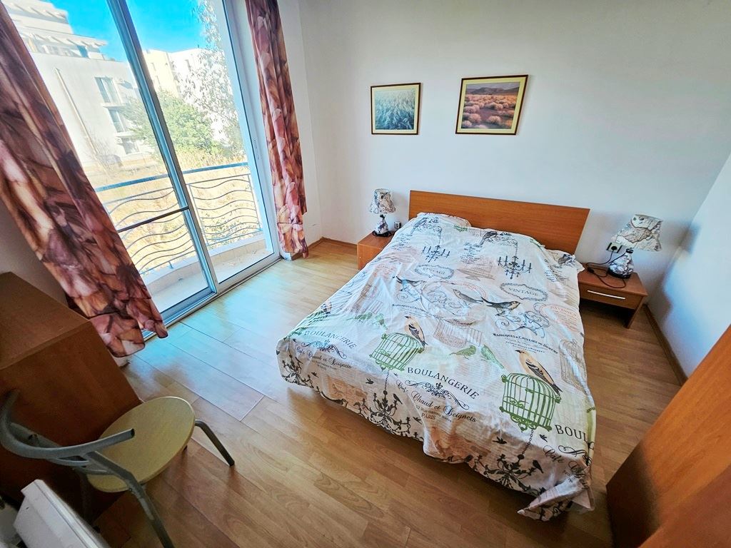 Prezentujemy jasne mieszkanie dwupokojowe z przyjemnym widokiem, położone w znanym nadmorskim kurorcie Słoneczny Brzeg. Nieruchomość znajduje się na drugim piętrze i ma łączną powierzchnię 40 m², oferując wygodną i dobrze zorganizowaną przestrzeń. Układ obejmuje salon z aneksem kuchennym i jadalnią, oddzielną sypialnię, łazienkę z toaletą oraz mały balkon z widokiem na teren kompleksu.