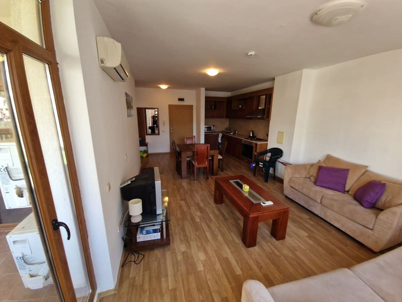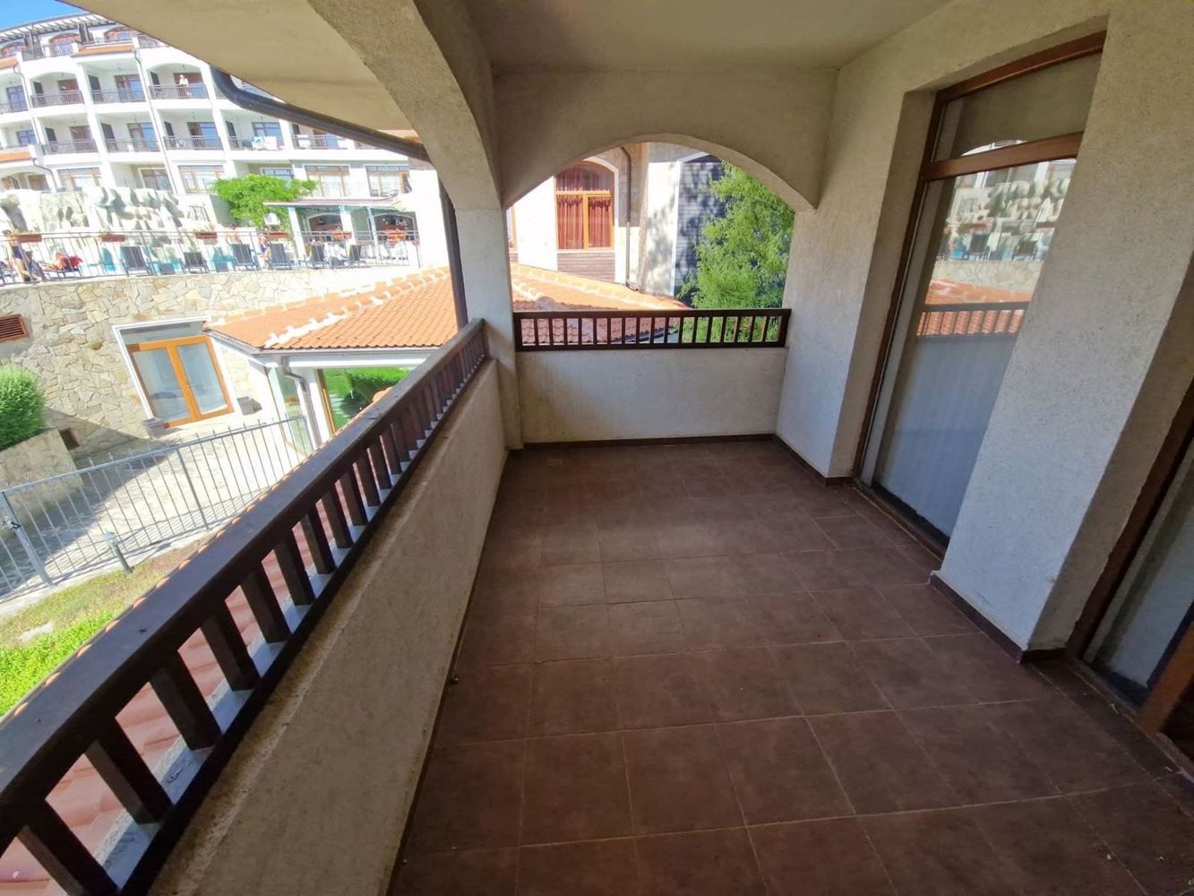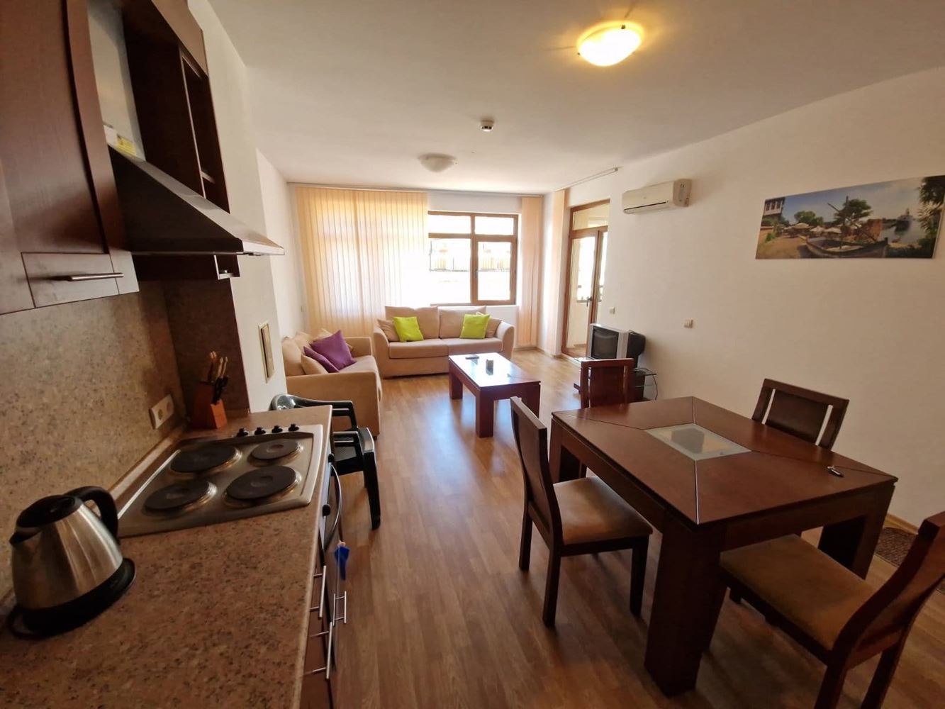 Oferujemy na sprzedaż mieszkanie dwupokojowe o powierzchni 75 m², położone na pierwszym piętrze mieszkalnym nad parterem w prestiżowym SPA hotelu w Aheloy. Mieszkanie imponuje funkcjonalnym rozkładem i przytulną atmosferą, stworzoną do komfortowego życia lub pełnego wypoczynku. Mieszkanie składa się z przestronnego salonu z aneksem kuchennym, jednej sypialni, łazienki z toaletą oraz dużego tarasu, który staje się naturalnym przedłużeniem mieszkania – idealne miejsce na poranną kawę, wieczorne rozmowy lub relaks z widokiem na zieleń i spokój. Taras jest ważnym atutem nieruchomości i dodaje dodatkowej wartości zarówno do użytku własnego, jak i wynajmu.