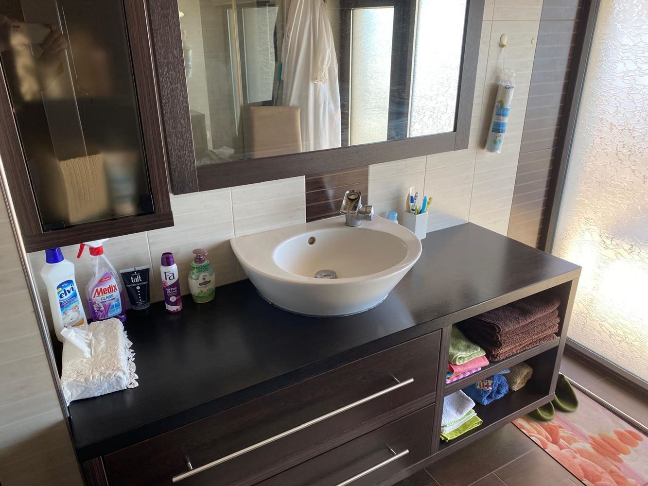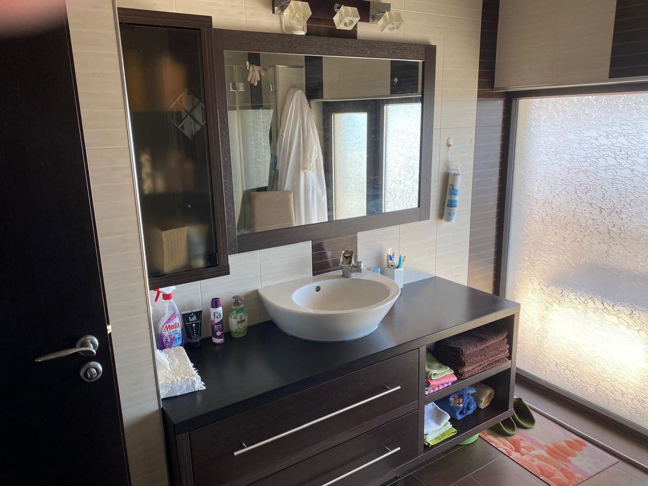 Sypialnia jest przestronna, w pełni umeblowana, z bezpośrednim wyjściem na duży taras wyposażony w markizę – idealne miejsce na poranną kawę z widokiem na morską linię horyzontu. Luksusowo wykończona łazienka z toaletą również posiada wyjście na ten sam taras, co dodaje wygody i poczucia przestrzeni.