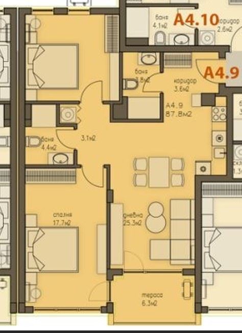Oferujemy przestronne mieszkanie z dwiema sypialniami, położone na czwartym piętrze, o łącznej powierzchni 103,56 m², w nowym, eleganckim kompleksie mieszkaniowym w trakcie budowy. Mieszkanie zostało zaprojektowane w nowoczesnej i funkcjonalnej koncepcji, łączącej przestrzeń i wygodę. Układ obejmuje salon z kuchnią, dwie sypialnie, łazienkę z toaletą, oddzielną toaletę oraz balkon, co zapewnia maksymalny komfort dla życia rodzinnego lub pobytu z przyjaciółmi. Mieszkanie jest oferowane w pełni wykończone, co pozwala nowym właścicielom cieszyć się nieruchomością bez dodatkowych wysiłków i inwestycji w prace wykończeniowe.