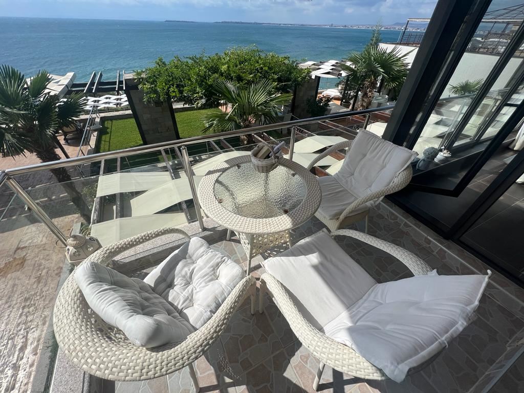 Mieszkanie jest sprzedawane w luksusowym standardzie, z wysokiej jakości meblami i sprzętem, zapewniającymi maksymalny komfort i przytulność. Rozkład pomieszczeń jest praktyczny i wygodny: przedpokój; jasny i przestronny salon z aneksem kuchennym i jadalnią; dwie komfortowe sypialnie; łazienka z toaletą i wanną; duży taras z wyjątkową panoramą morza. Idealne do zamieszkania przez cały rok, na pobyty sezonowe lub jako inwestycja pod wynajem – dzięki luksusowi, jakości wykończenia i doskonałej lokalizacji.