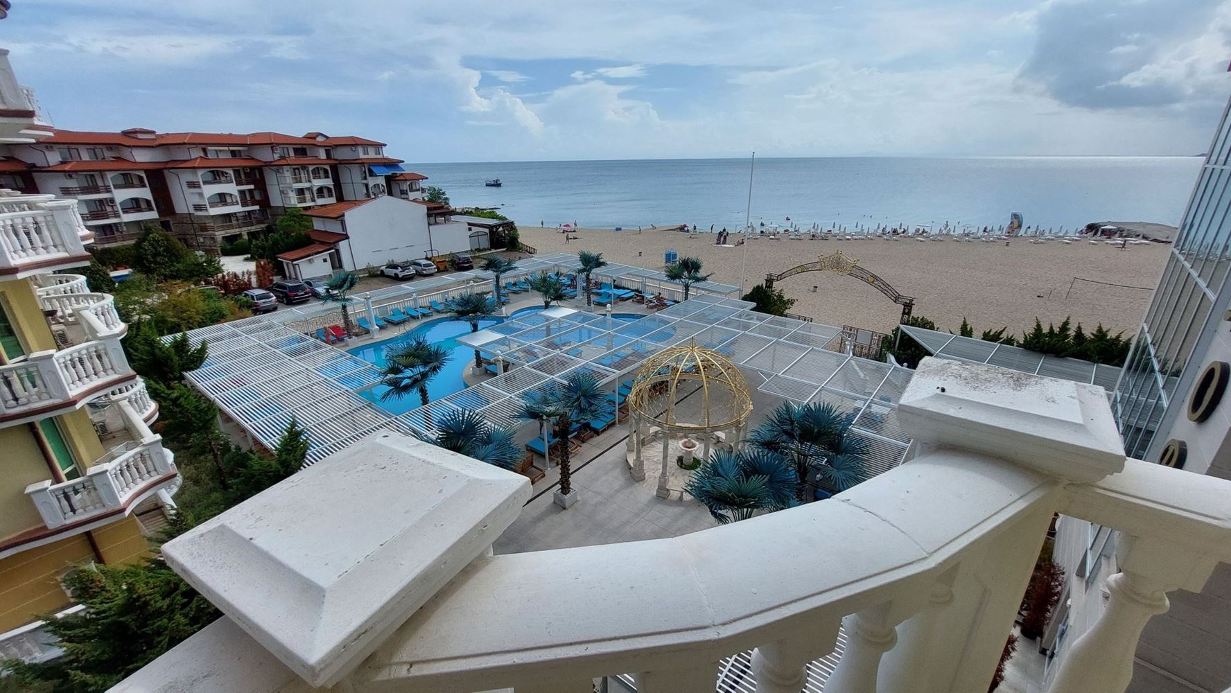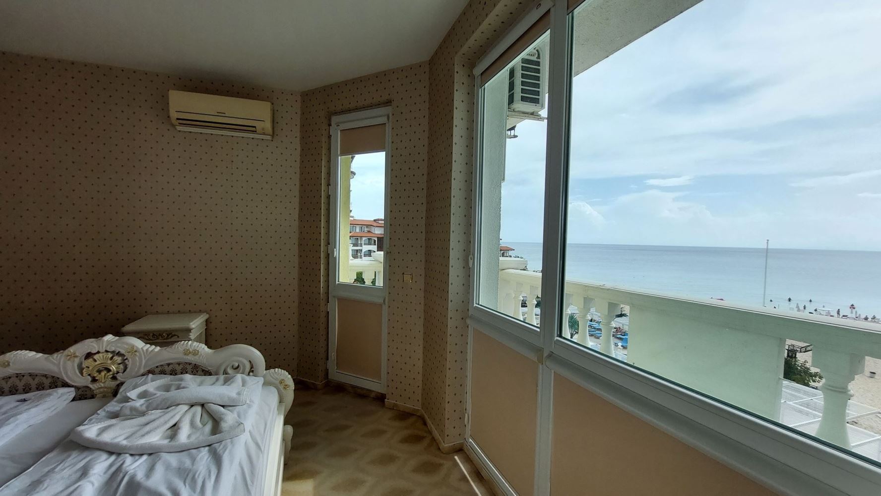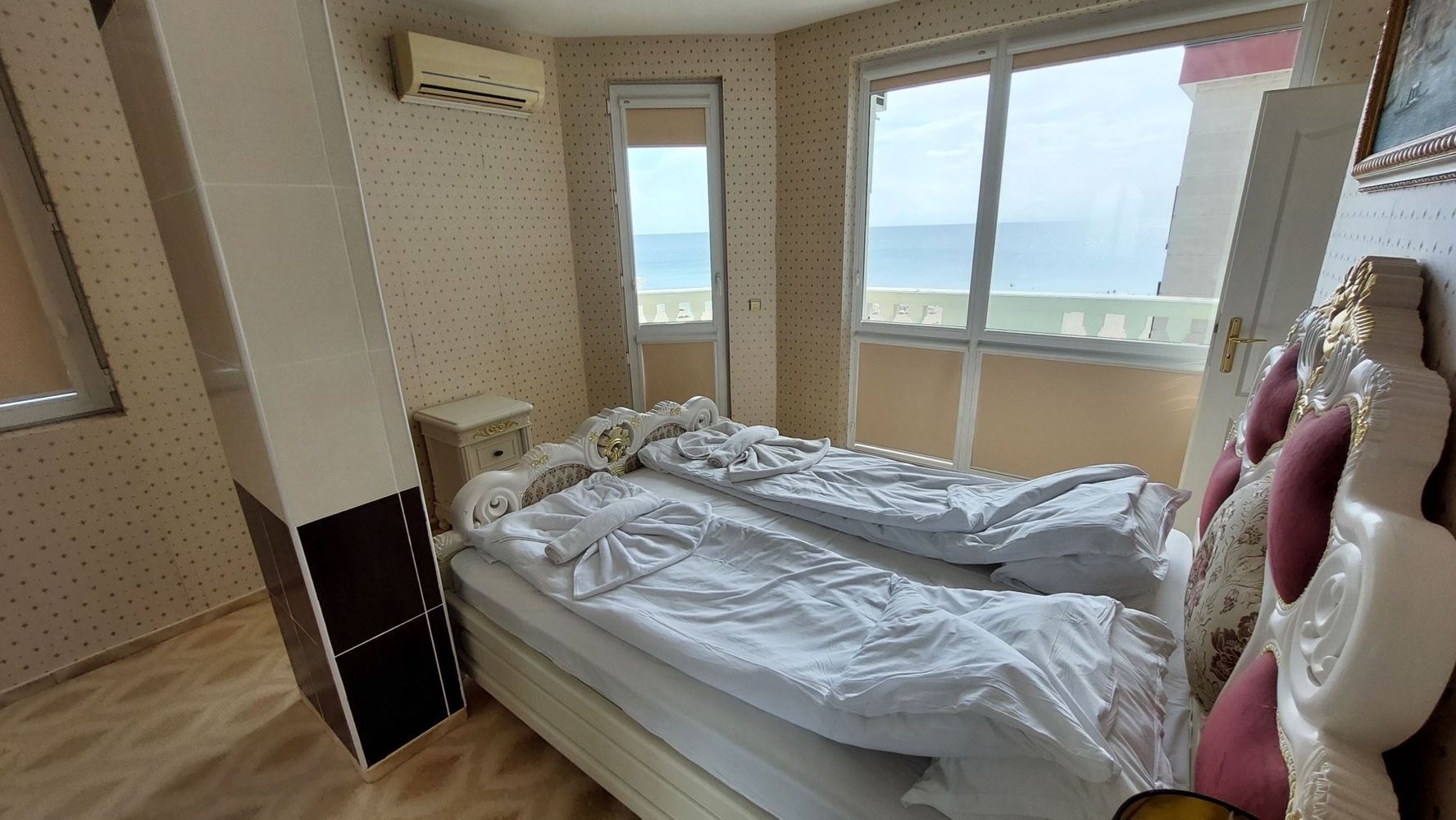 Prezentujemy wyjątkowy apartament z jedną sypialnią, położony na pierwszej linii w prestiżowym kurorcie Elenite, gdzie morze znajduje się dosłownie na wyciągnięcie ręki. Nieruchomość ma łączną powierzchnię 81 m² i znajduje się na czwartym piętrze z pięciu, w eleganckim budynku z doskonałą lokalizacją i bezpośrednim dostępem do plaży.