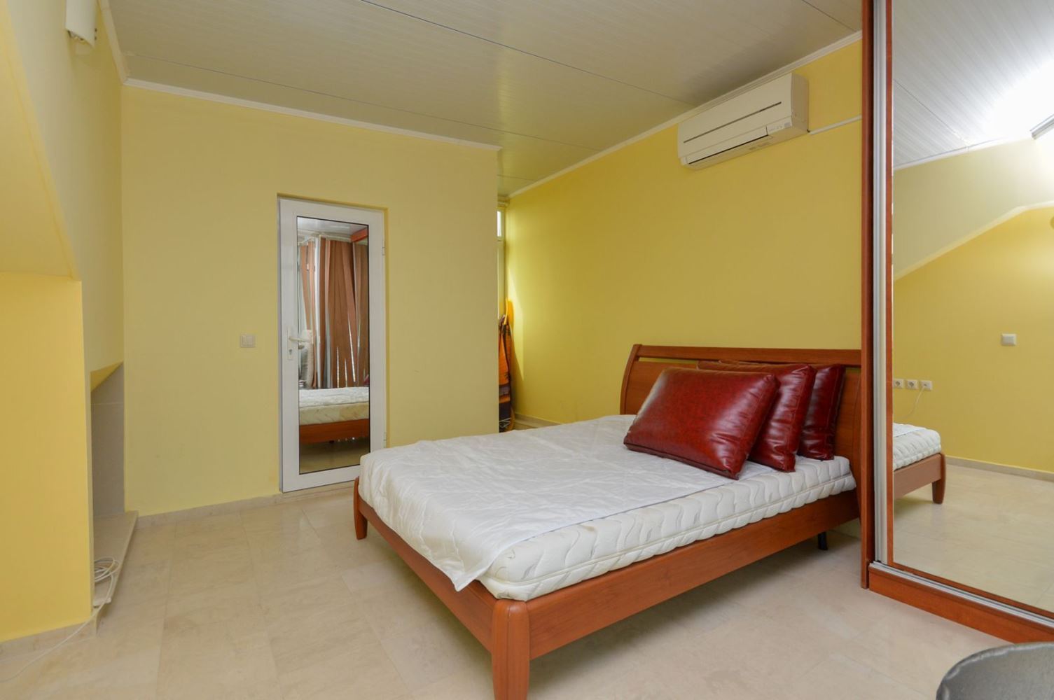 Na pierwszym poziomie znajduje się przestronny salon z aneksem kuchennym, dwie sypialnie, dwie łazienki oraz piękny panoramiczny taras z widokiem na morze, idealny do relaksu i niezapomnianych letnich wieczorów. Drugi poziom oferuje samodzielną sypialnię z własną łazienką i drugi duży taras, z którego można cieszyć się morskim wiatrem i malowniczymi wschodami słońca.