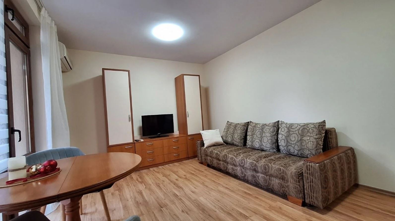 Prezentujemy przestronne mieszkanie o całkowitej powierzchni 70 m², położone na drugim piętrze pięciopiętrowego budynku, będącego częścią zamkniętego kompleksu w prestiżowym kurorcie Sveti Vlas. Mieszkanie oferuje wygodny i funkcjonalny układ, w tym przedpokój, salon z aneksem kuchennym, osobną sypialnię, łazienkę i taras z imponującym widokiem na morze. Nieruchomość jest w pełni umeblowana i wyposażona, gotowa do natychmiastowego zamieszkania lub wynajmu.