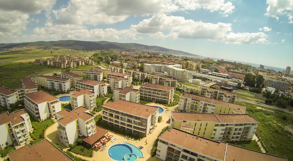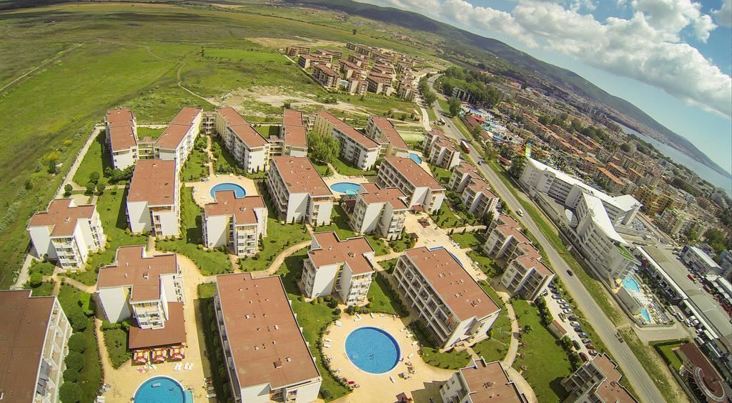Lokalizacja kompleksu jest wyjątkowo dogodna – w bezpośredniej bliskości Action Aquapark oraz w odległości spacerowej od plaży i centrum Słonecznego Brzegu. Zapewnia to łatwy dostęp do wszystkich atrakcji, restauracji, sklepów i rozrywek, jednocześnie zachowując spokojną atmosferę kompleksu.