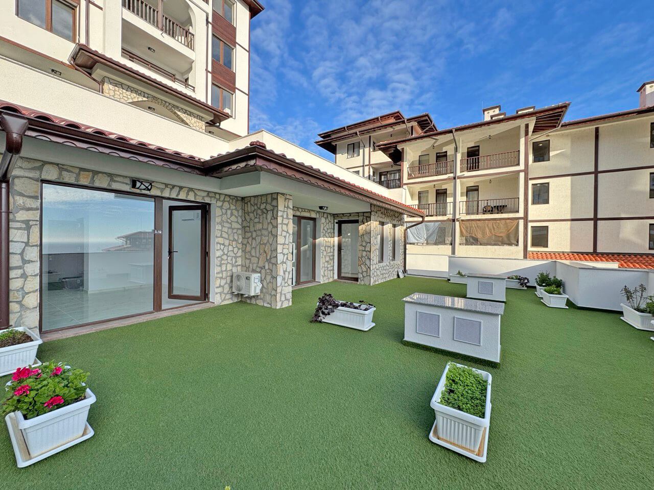 Oferujemy nowe studio położone w jednej z najbardziej pożądanych lokalizacji w Sveti Vlas, łączące spokój, komfort oraz piękny widok na morze i miasto. Nieruchomość ma powierzchnię 34 m² i znajduje się na parterze z prywatnym patio, które zapewnia przestrzeń na świeżym powietrzu i dodatkowy komfort.