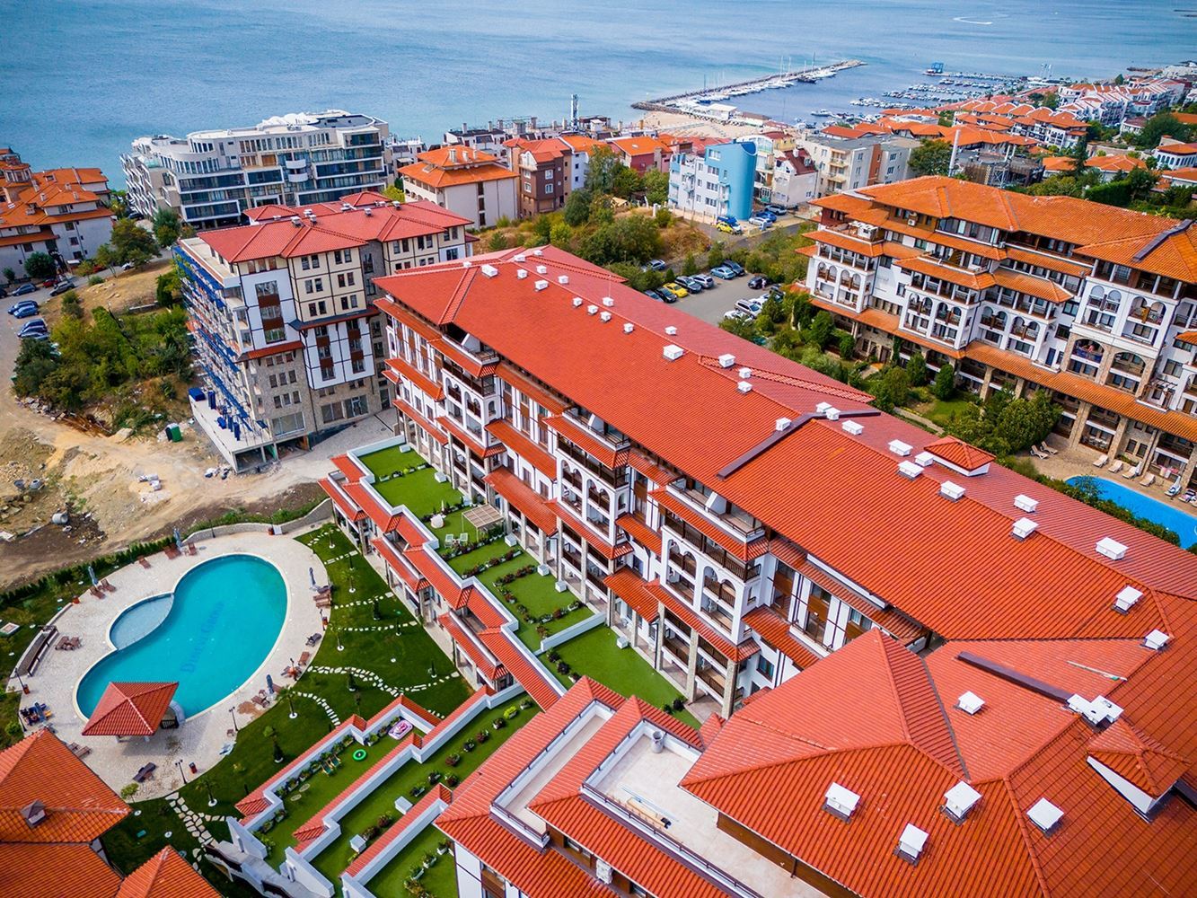 Kompleks wyróżnia się wysokim standardem utrzymania. Do dyspozycji mieszkańców są dwa baseny (dla dorosłych i dzieci) oraz stylowy bar przy basenie. Zadbane alejki spacerowe sprzyjają relaksowi.