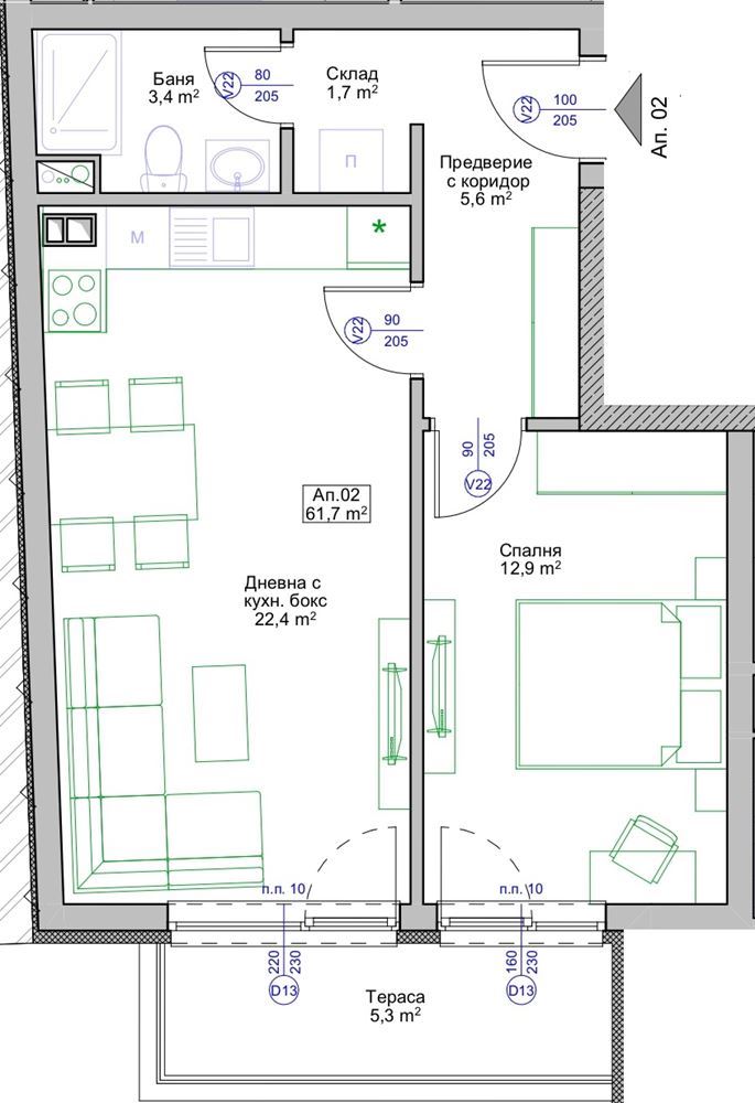 Mieszkanie wyróżnia się funkcjonalnym i wygodnym układem: hol/wiatrołap, przestronny salon z aneksem kuchennym, osobna sypialnia, łazienka z WC, pomieszczenie gospodarcze oraz jeden taras – idealne miejsce na poranną kawę lub wieczorny relaks. Kompaktowy i logiczny układ zapewnia poczucie przestrzeni i łatwą organizację wnętrza. Mieszkanie zostanie oddane zgodnie z bułgarskimi standardami budowlanymi (BDS), z dbałością o szczegóły i wysoką jakość materiałów, co pozwoli nowym właścicielom wdrożyć własną koncepcję aranżacji i wyposażenia. Budynek charakteryzuje się nowoczesną architekturą, reprezentacyjnymi częściami wspólnymi i windą dla codziennej wygody.