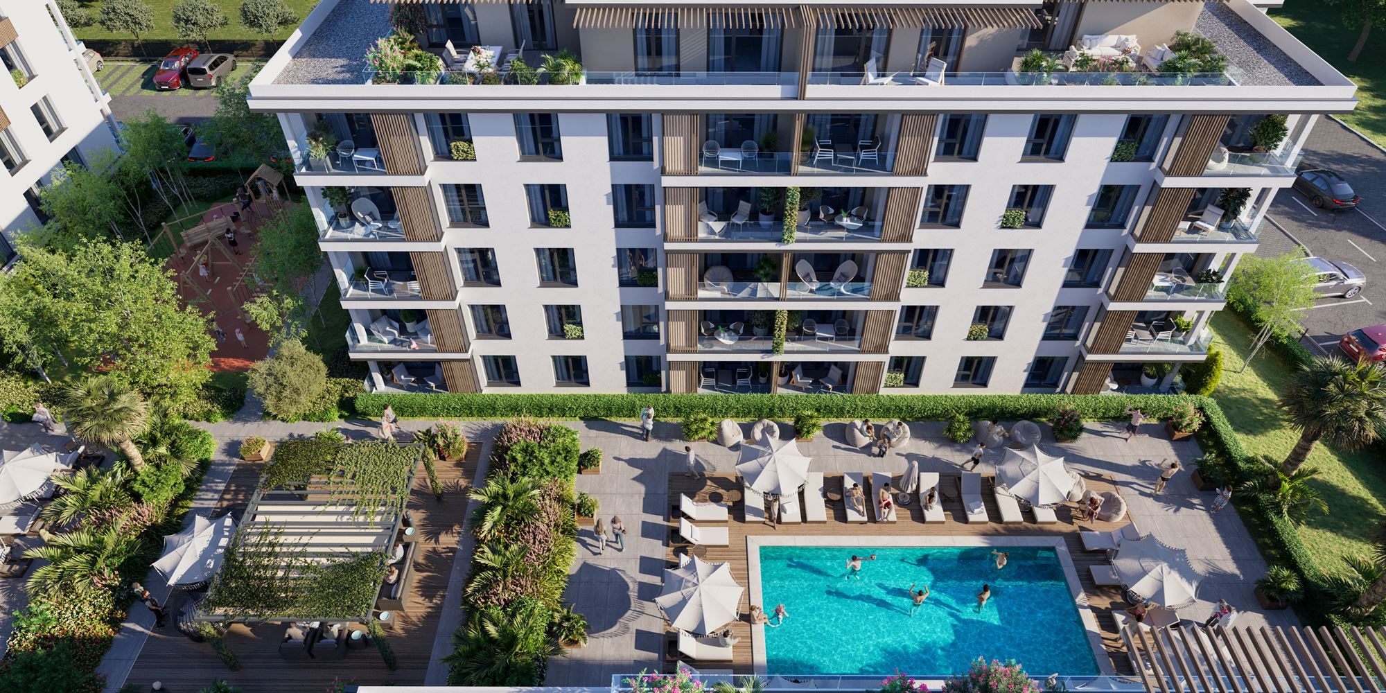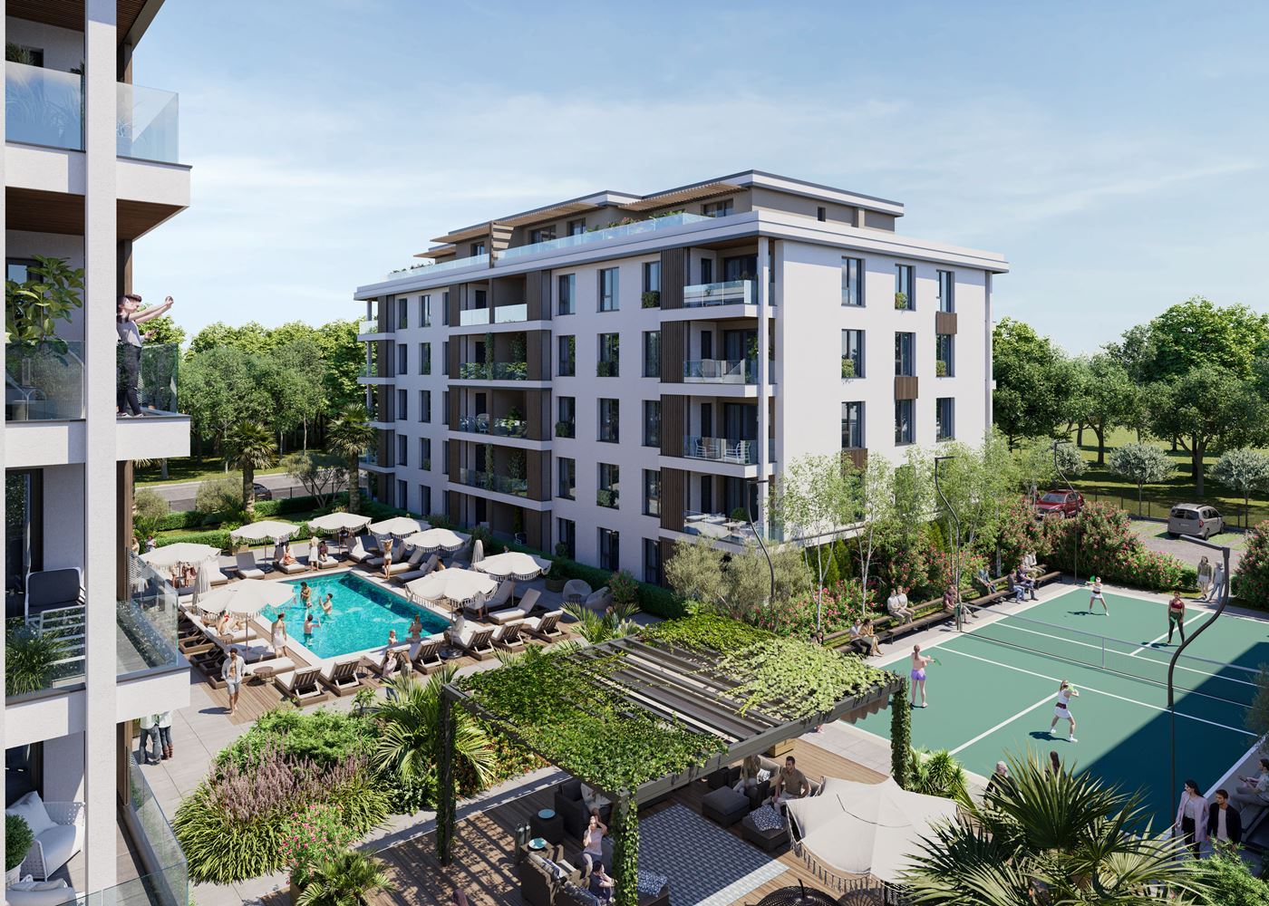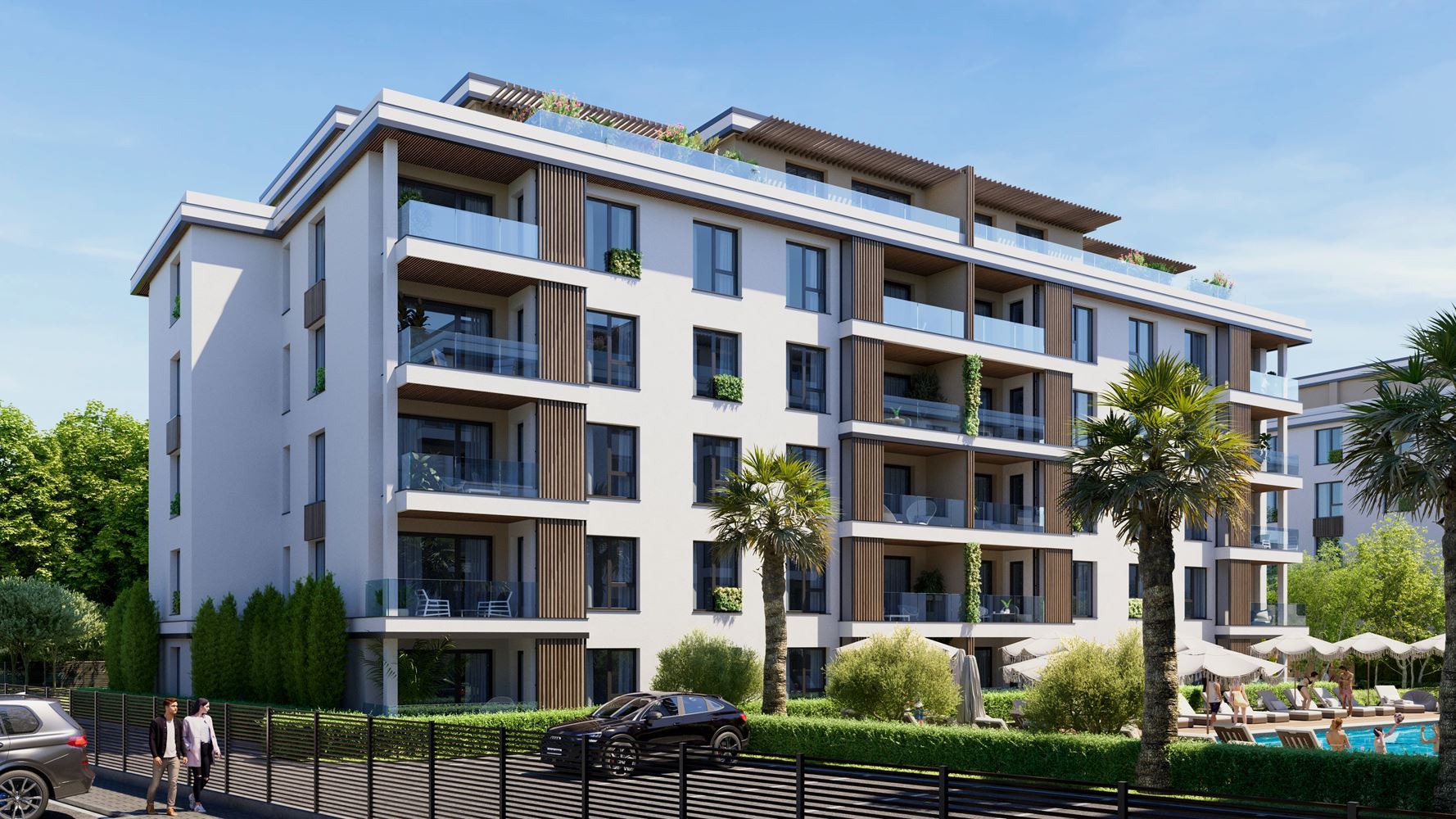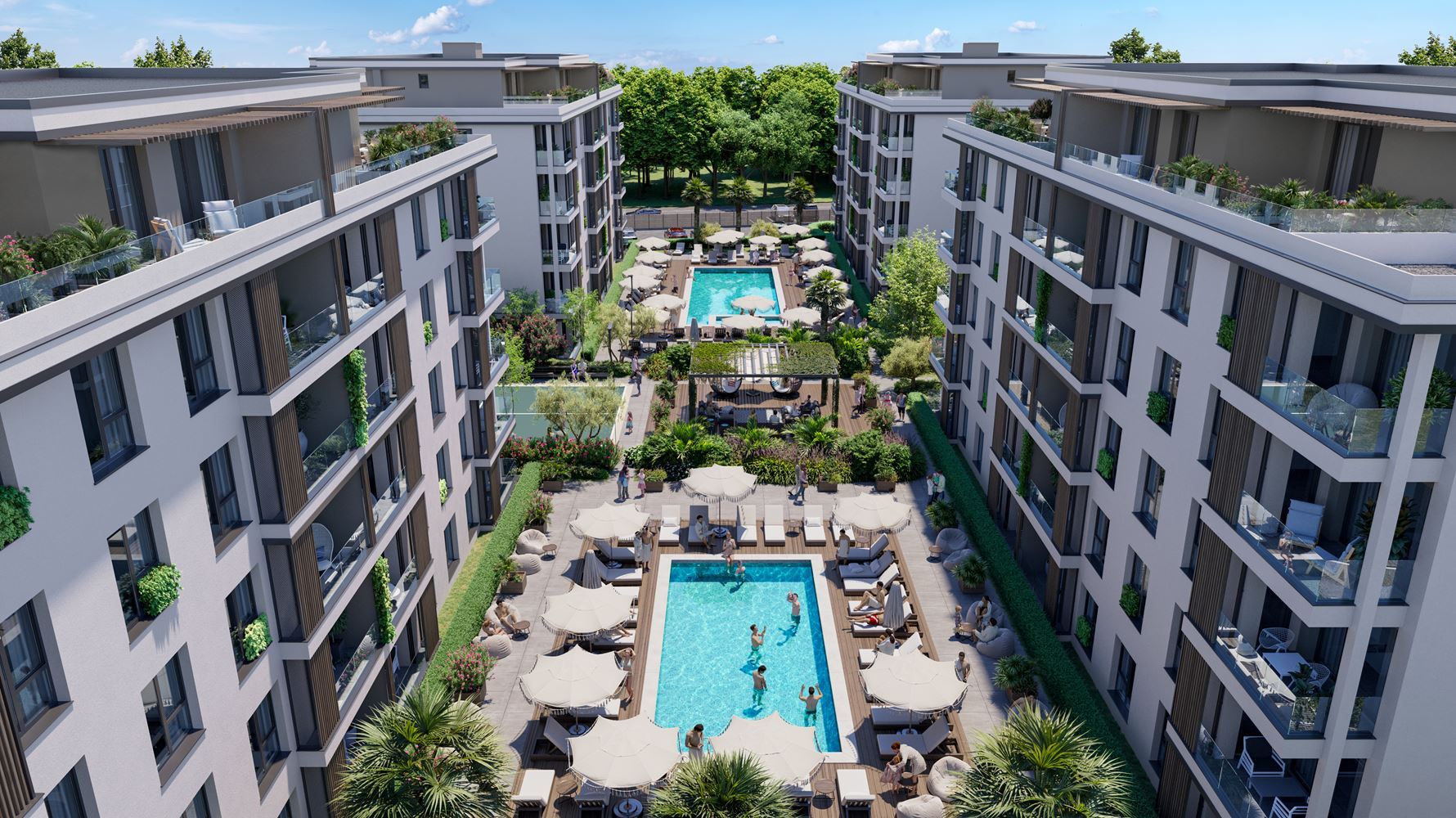 Kompleks składa się z czterech eleganckich budynków z łączną liczbą około 200 apartamentów, zaprojektowanych z naciskiem na funkcjonalność, światło dzienne i poczucie przestrzeni. Oferowane są apartamenty z jedną lub dwiema sypialniami, z jedną lub dwiema łazienkami, a także penthouse’y, przy czym wszystkie nieruchomości są przekazywane w pełni wykończone „pod klucz”, co umożliwia szybkie zamieszkanie lub wynajem.
