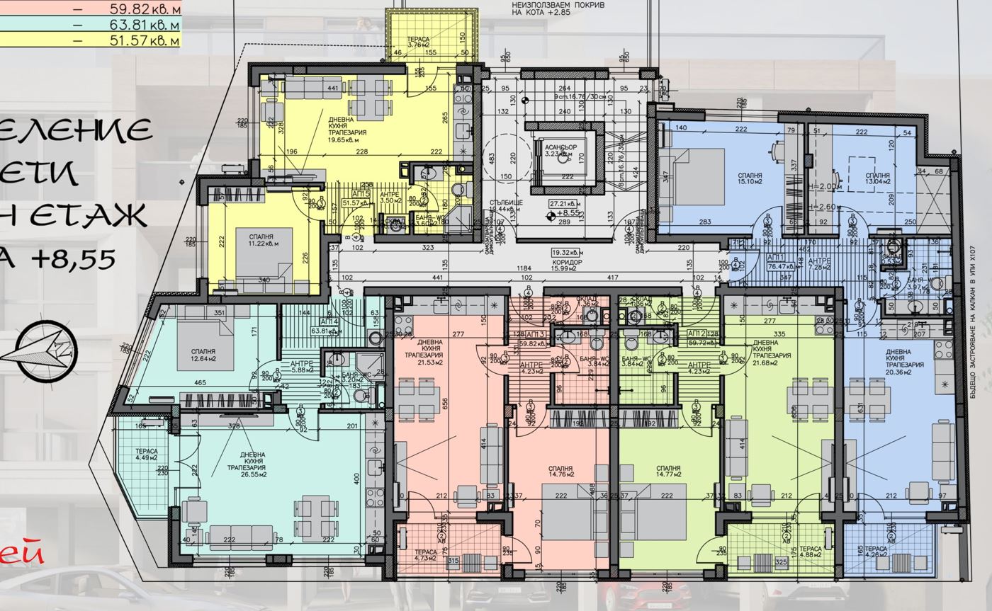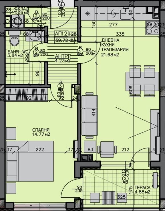 Przedstawiamy nowoczesne mieszkanie dwupokojowe o powierzchni 71.42 m², położone na czwartym piętrze nowoczesnego budynku mieszkalnego w prestiżowej dzielnicy Zornitsa w Burgas. Nieruchomość jest częścią nowego współczesnego projektu, zaprojektowanego z myślą o komforcie przyszłych właścicieli i łączącego nowoczesny design, funkcjonalność oraz strategiczną lokalizację.