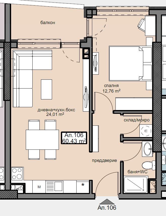 Oferujemy na sprzedaż mieszkanie z jedną sypialnią o powierzchni 70,69 m², położone na pierwszym piętrze nad parterem w nowym, nowoczesnym budynku w jednej z najbardziej pożądanych dzielnic Burgas. Nieruchomość cechuje się bardzo praktycznym i funkcjonalnym układem, zaprojektowanym zarówno do komfortowego mieszkania, jak i jako inwestycja.