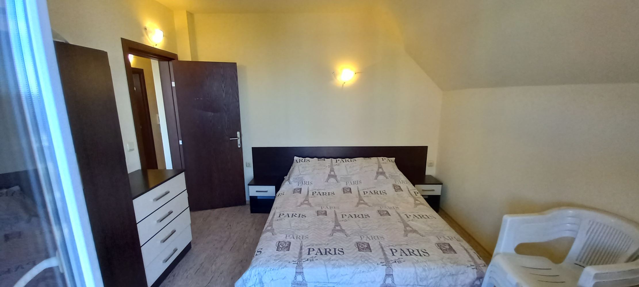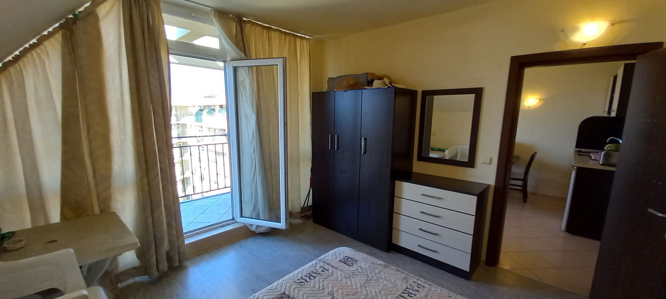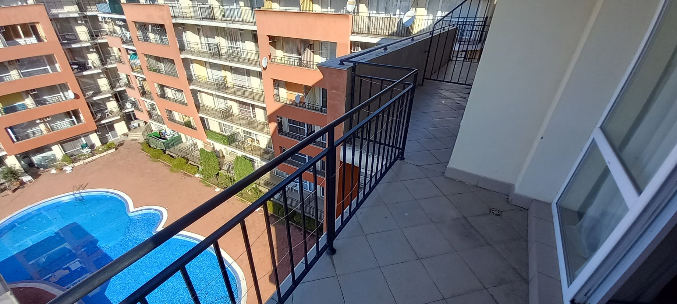 Panoramiczne trzypokojowe mieszkanie z widokiem na basen na ostatnim piętrze w Słonecznym Brzegu – umeblowane i gotowe do zamieszkania