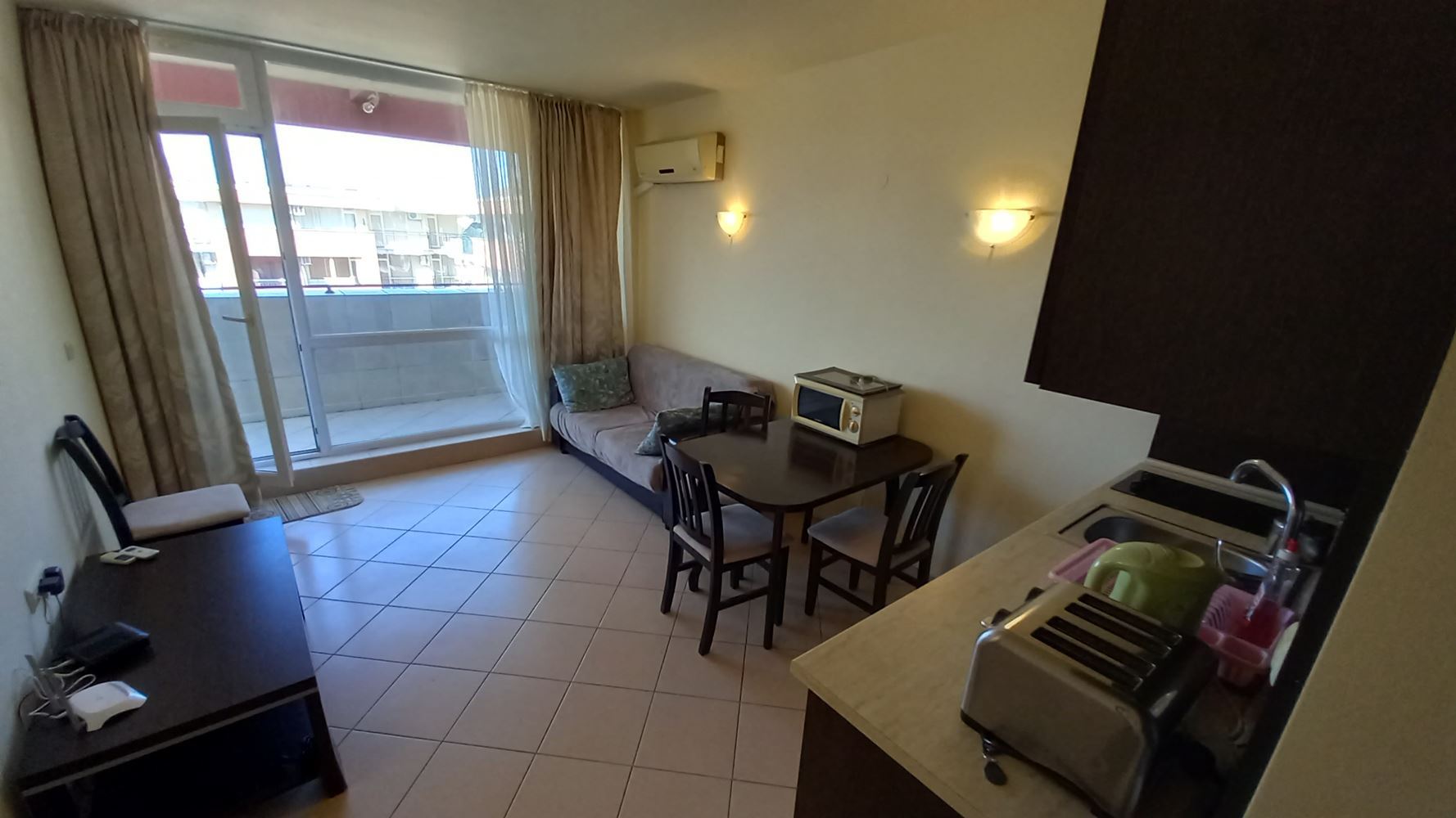 Prezentujemy atrakcyjne trzypokojowe mieszkanie o powierzchni 80 m², położone na ostatnim piętrze dobrze utrzymanego kompleksu z windą w Słonecznym Brzegu. Nieruchomość zachwyca panoramicznym widokiem na basen, dużą ilością światła i przestronnością. Komfortowe wyposażenie sprawia, że mieszkanie jest gotowe do natychmiastowego zamieszkania lub wynajmu.