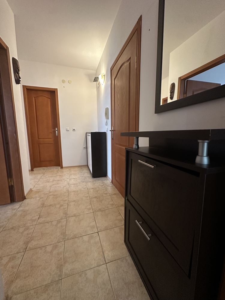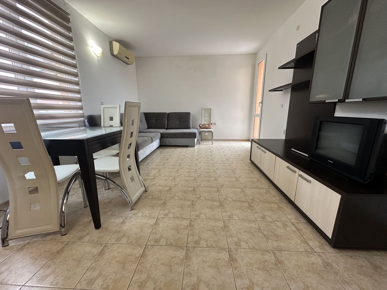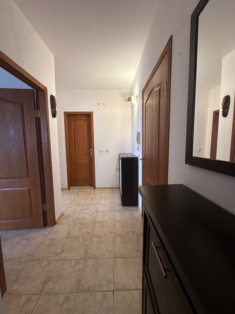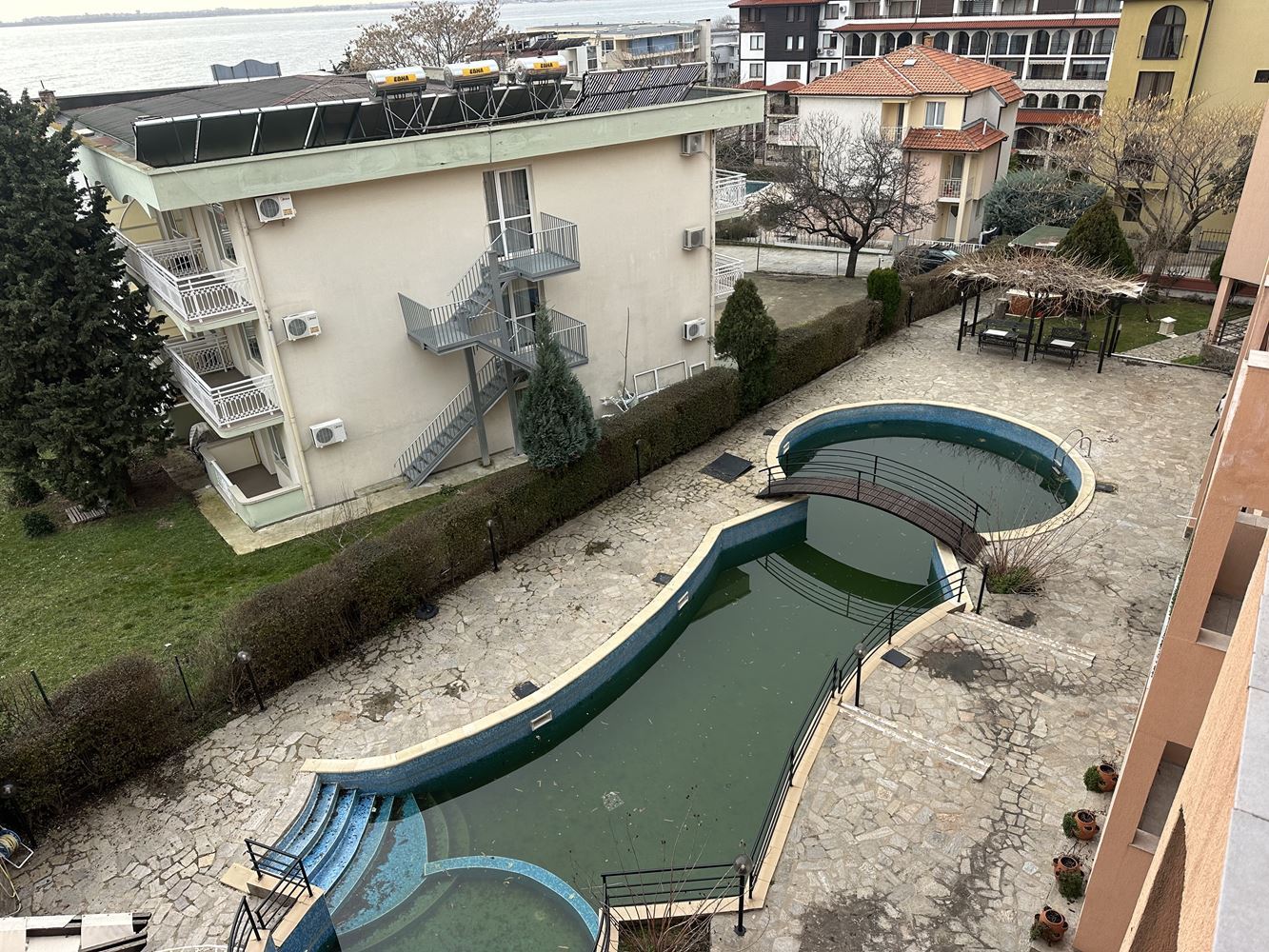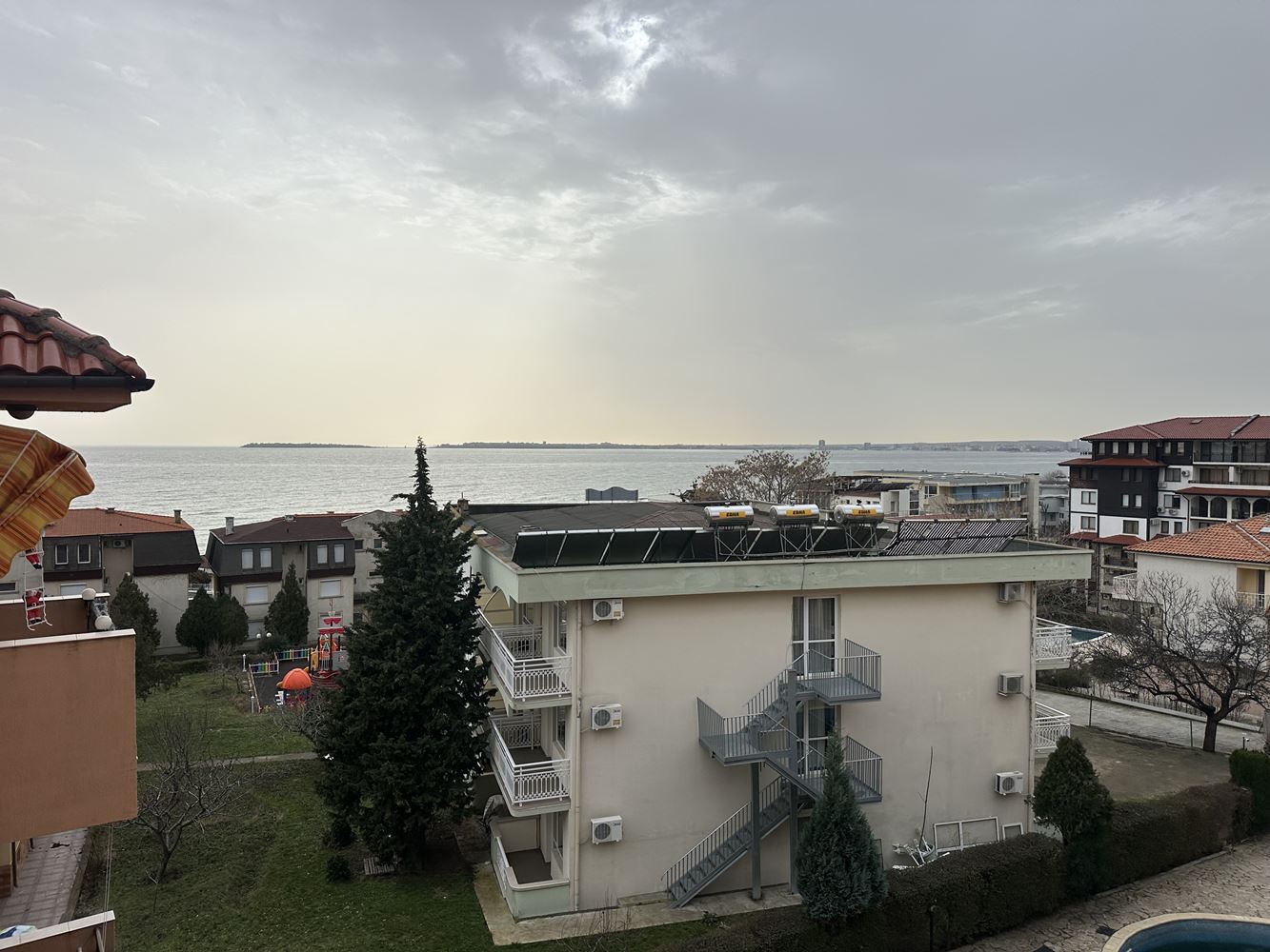 Oferujemy na sprzedaż jasny i przestronny apartament z 2 sypialniami o łącznej powierzchni 96 m², położony na czwartym piętrze kompleksu, niemal na pierwszej linii w kurorcie Święty Włas. Zaledwie około 150 metrów od morza, nieruchomość daje wyjątkową możliwość podziwiania frontalnego widoku na morze i basen, łącząc spokój, komfort i prestiżową lokalizację nadbrzeżną.