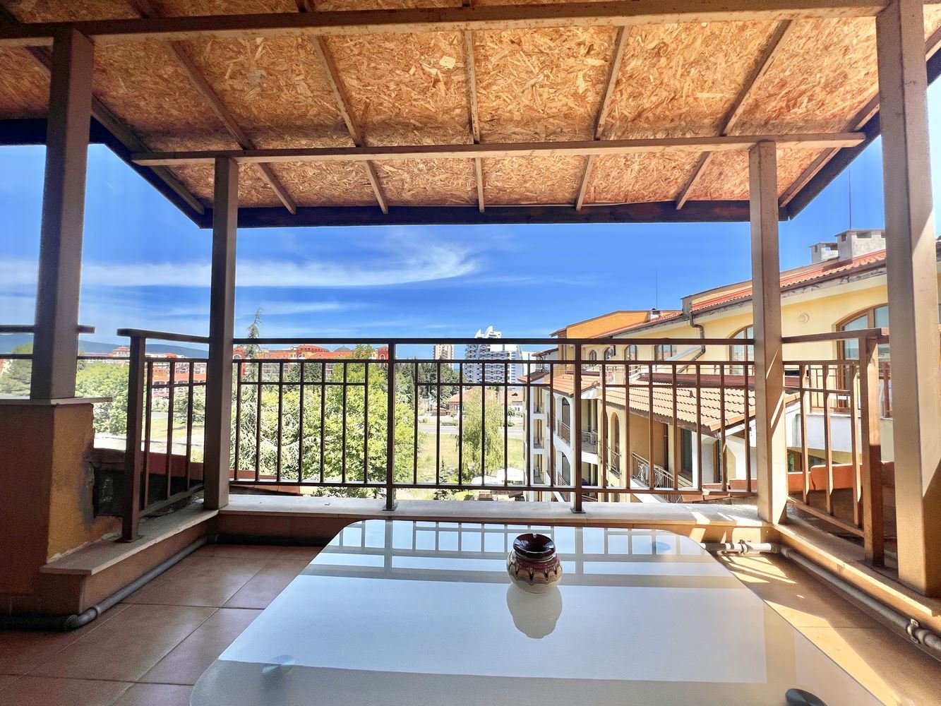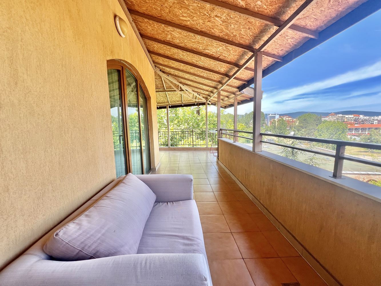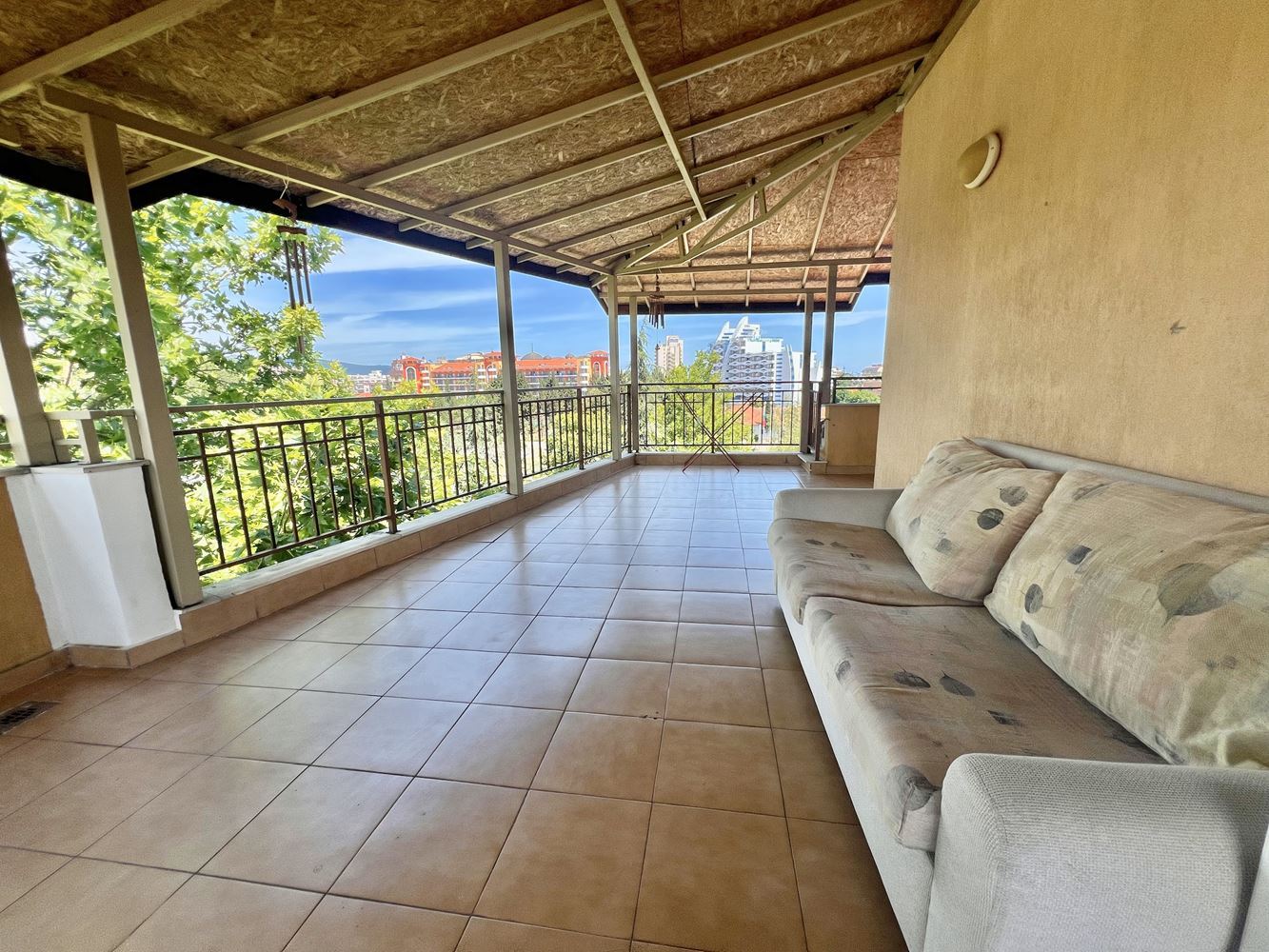 Na sprzedaż jest wspaniały apartament z jedną sypialnią w pobliżu plaży kurortu. Blisko plaży w Słonecznym Brzegu. Ta stylowa i przytulna nieruchomość o łącznej powierzchni 101,50 m2 znajduje się na najwyższym piętrze nowoczesnego budynku z windą, dzięki czemu idealnie nadaje się na nowy dom lub wakacyjną przystań. Apartament oferuje wygodny układ i funkcjonalność. Wchodząc do środka znajdziemy słoneczny salon z aneksem kuchennym. Wygodna sypialnia to idealne miejsce na relaks i odpoczynek. Z dużego balkonu roztacza się piękny widok na okolicę. Apartament jest w pełni umeblowany i wyposażony we wszystko, czego potrzebujesz, aby od razu się wprowadzić. Nowoczesna łazienka została starannie zaprojektowana z myślą o wygodzie i funkcjonalności.