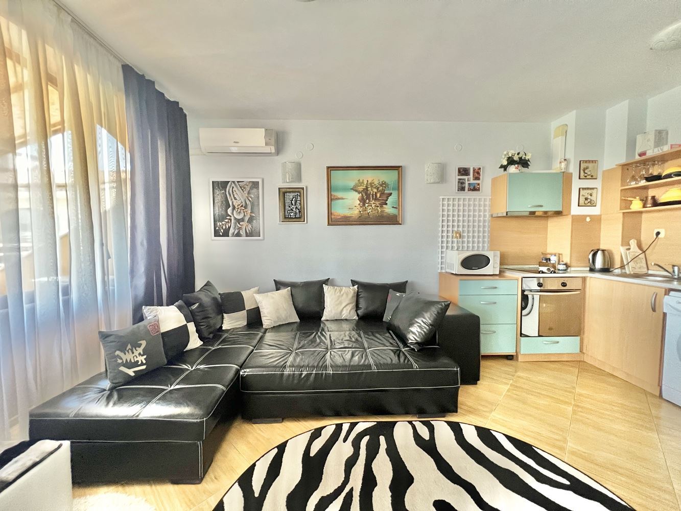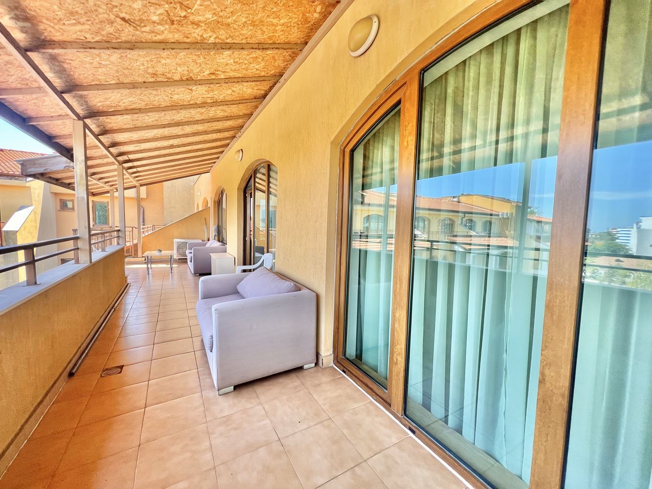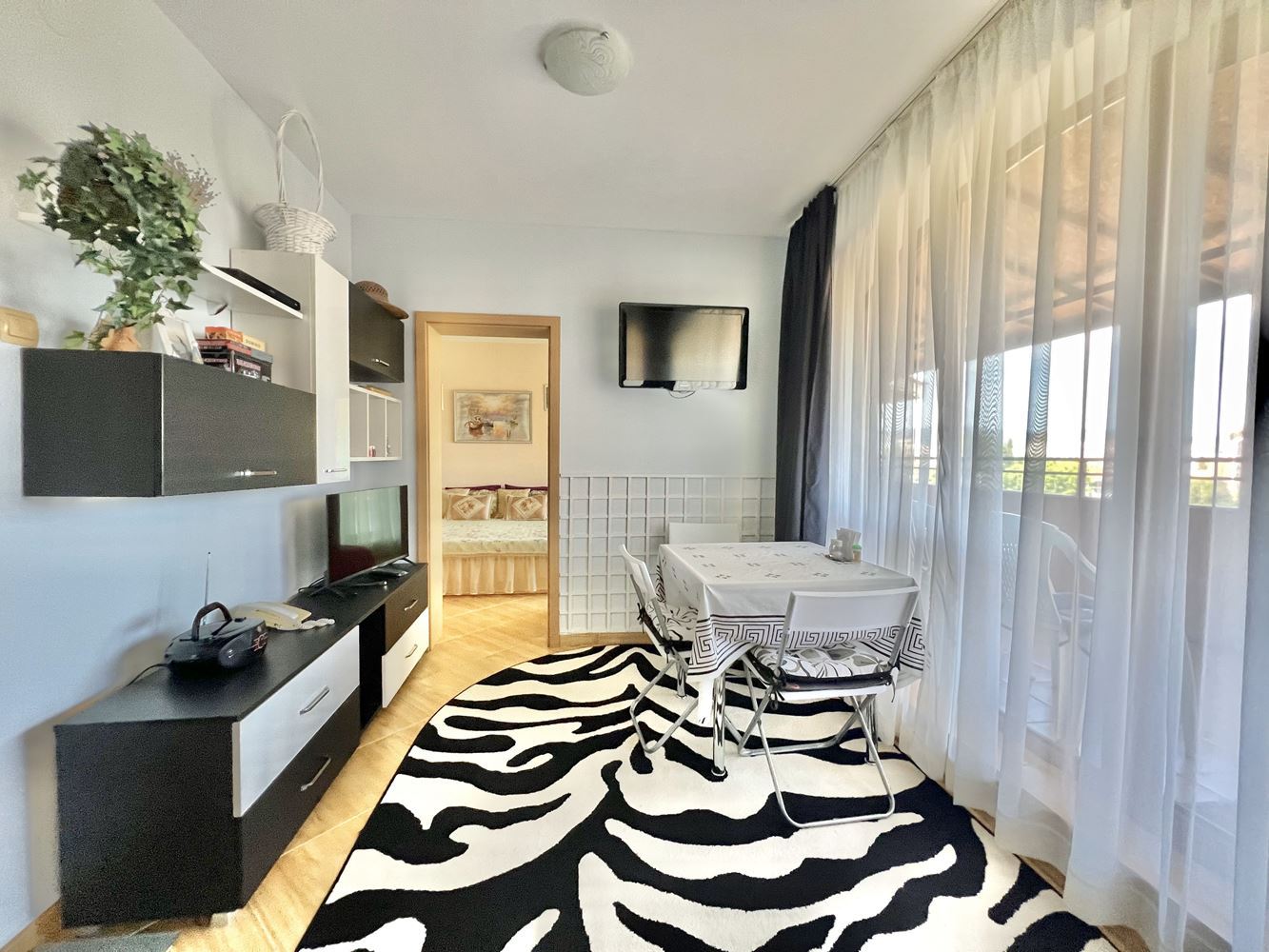 Na sprzedaż jest wspaniały apartament z jedną sypialnią w pobliżu plaży kurortu. Blisko plaży w Słonecznym Brzegu. Ta stylowa i przytulna nieruchomość o łącznej powierzchni 101,50 m2 znajduje się na najwyższym piętrze nowoczesnego budynku z windą, dzięki czemu idealnie nadaje się na nowy dom lub wakacyjną przystań. Apartament oferuje wygodny układ i funkcjonalność. Wchodząc do środka znajdziemy słoneczny salon z aneksem kuchennym. Wygodna sypialnia to idealne miejsce na relaks i odpoczynek. Z dużego balkonu roztacza się piękny widok na okolicę. Apartament jest w pełni umeblowany i wyposażony we wszystko, czego potrzebujesz, aby od razu się wprowadzić. Nowoczesna łazienka została starannie zaprojektowana z myślą o wygodzie i funkcjonalności.