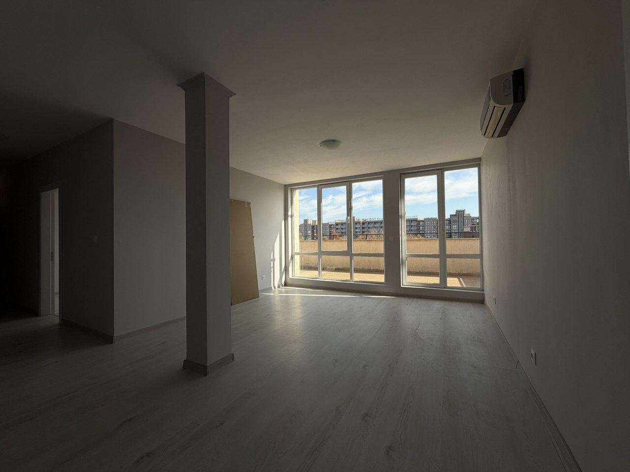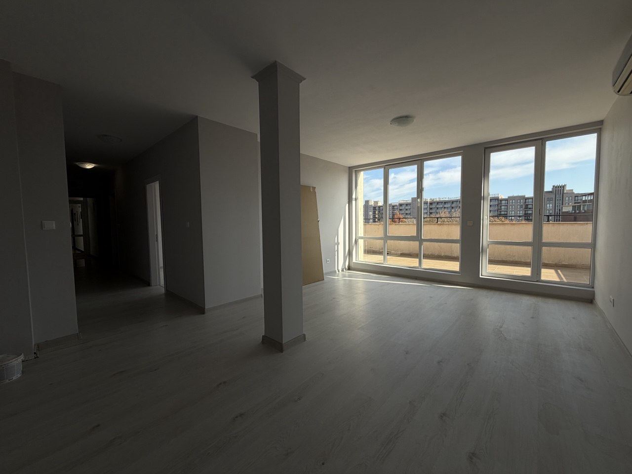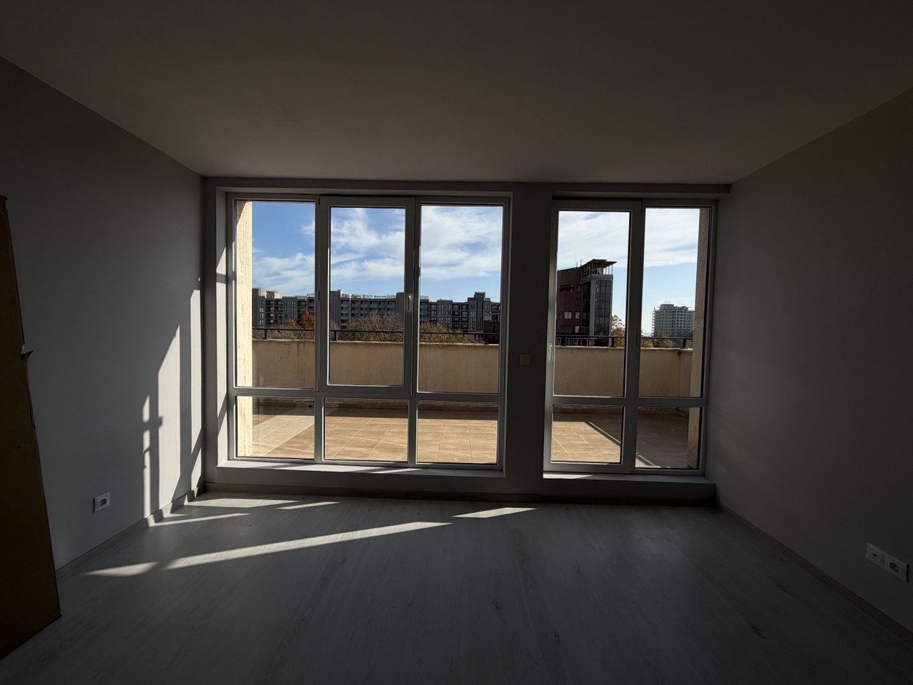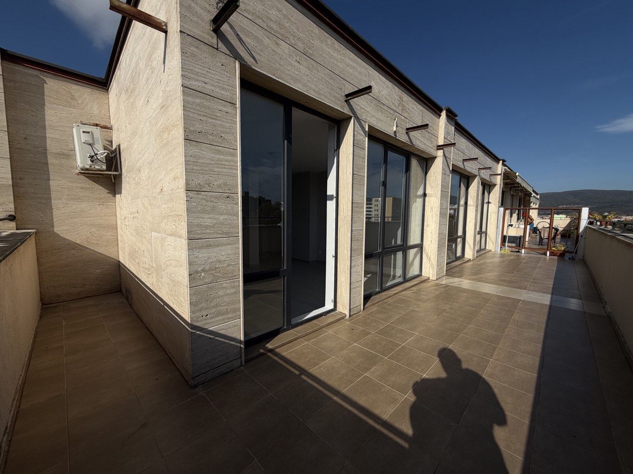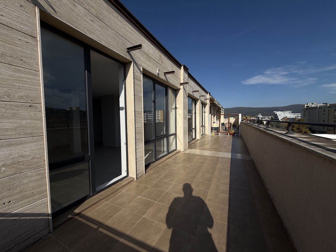 Prezentujemy wyjątkowy trzypokojowy, nieumeblowany penthouse o łącznej powierzchni 130 m², położony na najwyższym piętrze nowoczesnego kompleksu mieszkalnego w samym centrum Słonecznego Brzegu. Lokalizacja to prawdziwa zaleta – zaledwie 300 metrów od plaży i morza, ze wszystkimi udogodnieniami kurortu w pobliżu. Budynek jest zadbany i wyposażony w windę, zapewniając wygodny dostęp na najwyższe piętro.