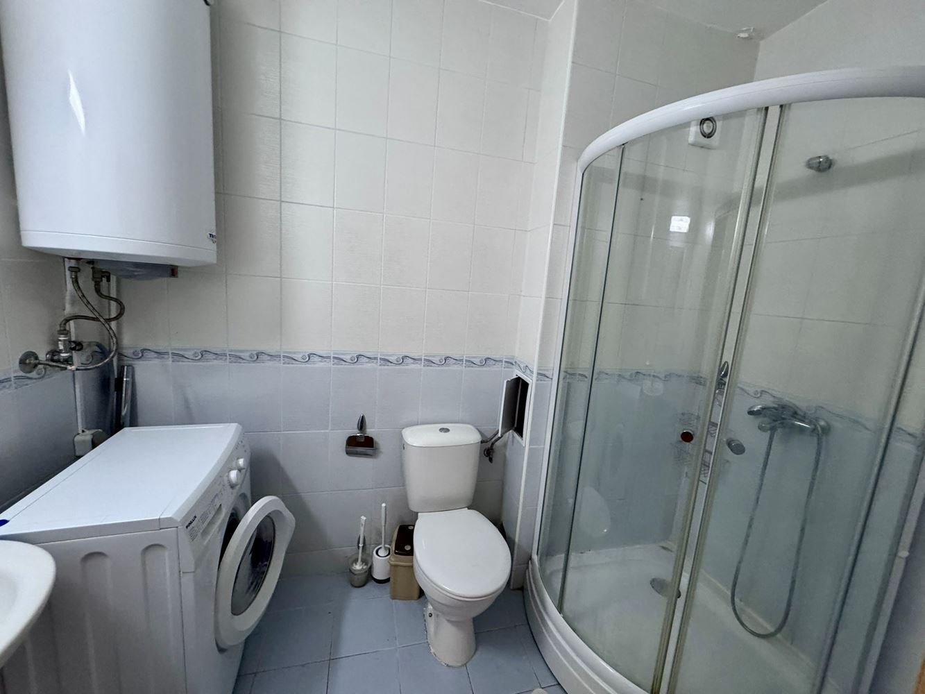 Oddzielny korytarz prowadzi do przestronnej sypialni z wyjściem na ten sam taras, zapewniając prywatny dostęp na zewnątrz i maksymalny komfort. Łazienka jest w pełni wyposażona we wszystkie niezbędne elementy codziennego użytku.