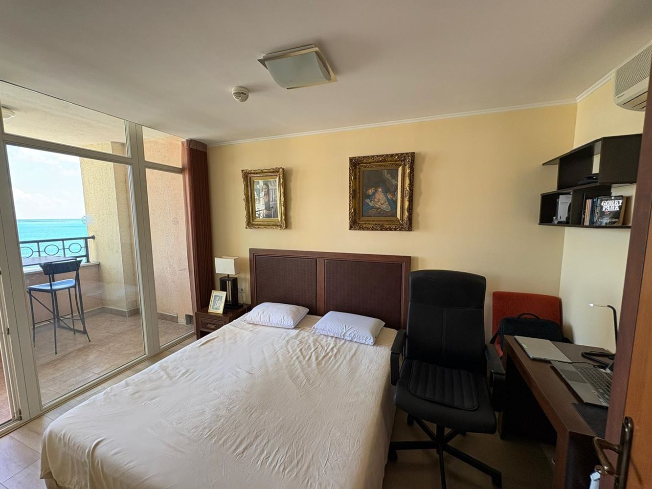 Na sprzedaż wyjątkowe trzypokojowe mieszkanie z pięknym widokiem na morze, położone w jednym z najbardziej atrakcyjnych kompleksów w pierwszej linii w Pomorie. Ta przestronna nieruchomość o powierzchni 88 m² oferuje połączenie komfortu, luksusu i unikalnych udogodnień, które zadowolą nawet najbardziej wymagających. Apartament znajduje się na ósmym piętrze z dziesięciu i dostępny jest dzięki nowoczesnej windzie. Wnętrze jest stylowo umeblowane i gotowe do wprowadzenia się. Składa się z trzech pomieszczeń: dwóch przytulnych sypialni, jasnego i przestronnego salonu z bezpośrednim wyjściem na balkon, z którego roztacza się widok na morze. Łazienka jest w pełni wyposażona dla Twojej wygody.
