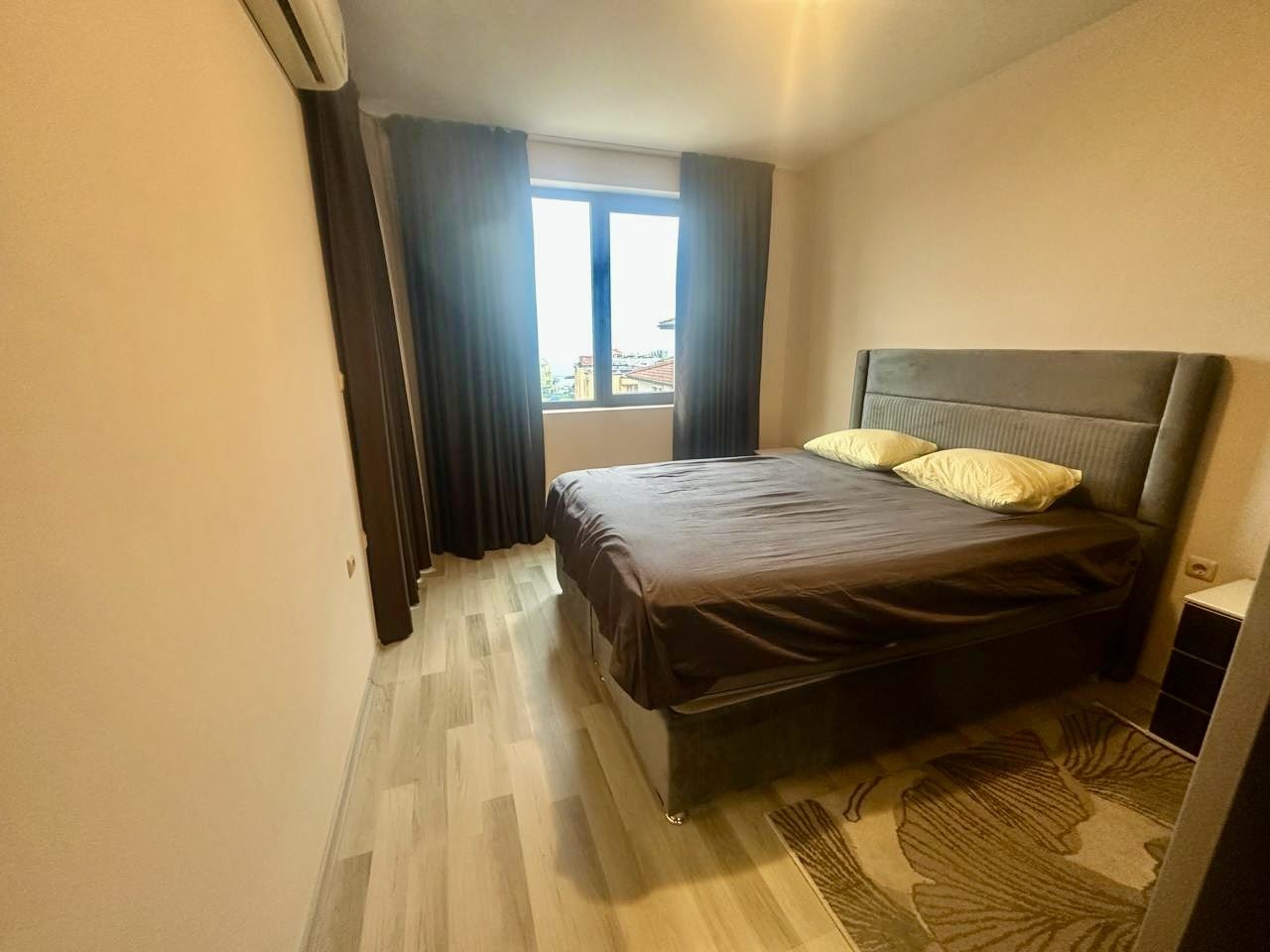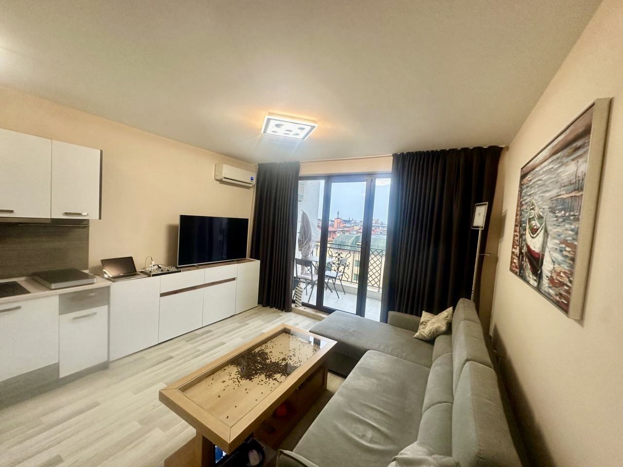 Prezentujemy Państwu wyjątkowe apartament z dwiema sypialniami o powierzchni 91 m², położone na piątym piętrze w prestiżowym kompleksie „Apollon” w Nesebyrze. Nieruchomość zachwyca niesamowitym widokiem na morze, który otwiera się przed Państwem każdego dnia – panorama niosąca poczucie wolności, przestrzeni i spokoju. Mieszkanie posiada doskonały funkcjonalny układ, łączący komfort i wygodę. Przestronny salon z dużą kuchnią tworzy poczucie światła i powietrza, zapewniając wystarczająco miejsca zarówno na część jadalnianą, jak i przytulną strefę wypoczynkową. Dwie duże sypialnie zapewniają spokój i prywatną przestrzeń dla całej rodziny lub gości. Nieruchomość posiada dwie łazienki z toaletą, co jest wyjątkowo praktycznym rozwiązaniem dla większego gospodarstwa domowego, a także dwa tarasy, z których można podziwiać piękny widok na morze oraz tereny zielone kompleksu. Przy wejściu znajduje się wygodny korytarz, który uzupełnia funkcjonalność mieszkania. Mieszkanie jest w pełni umeblowane, komfortowe i gotowe do zamieszkania, a meble i układ zostały dobrane z myślą o wygodnym codziennym życiu lub beztroskich wakacjach. Pomieszczenia są jasne i dobrze zorganizowane, tworząc poczucie domu, w którym wszystko jest na swoim miejscu.