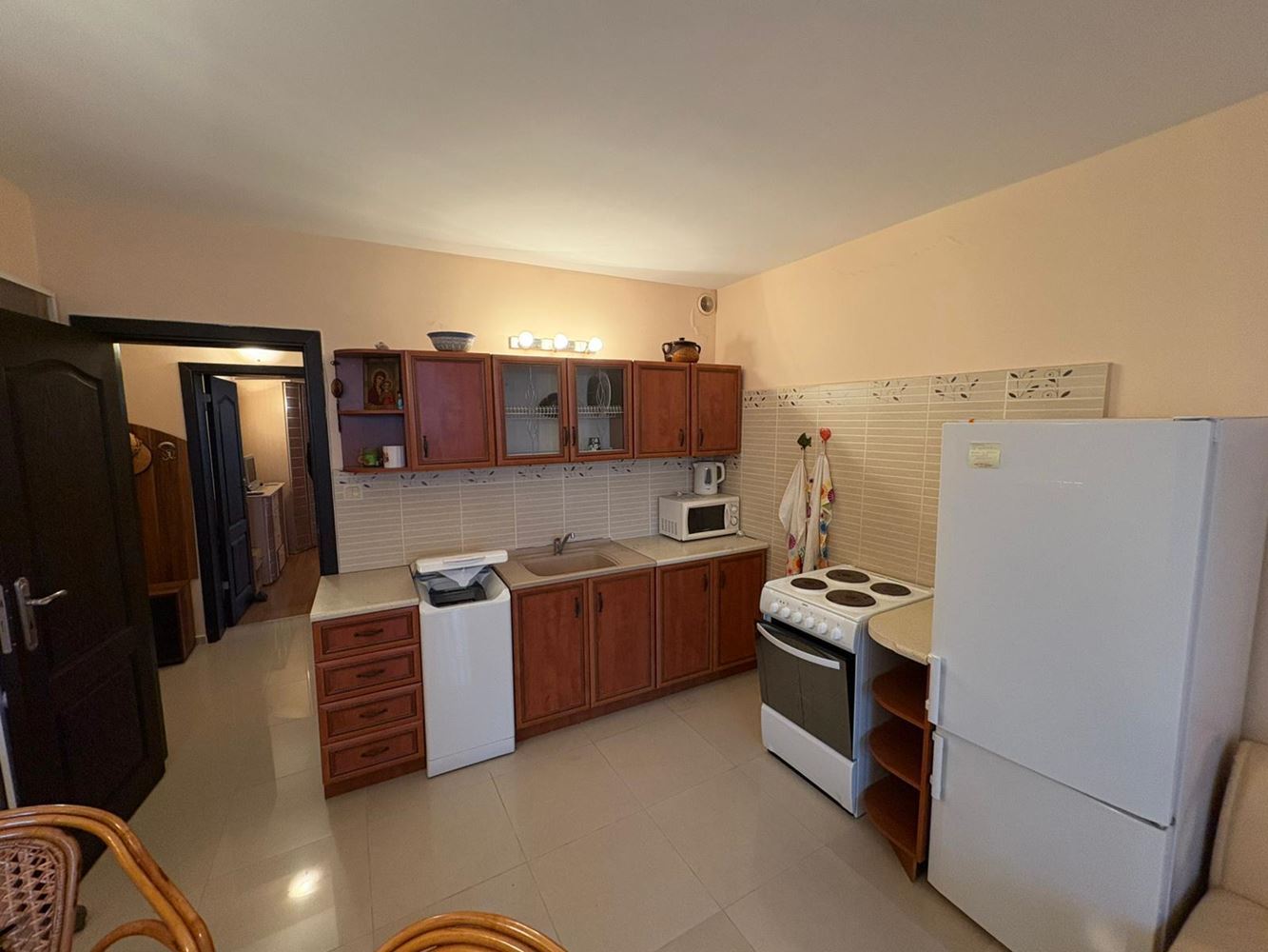 Oferujemy jasne i funkcjonalne dwupokojowe mieszkanie o powierzchni 60 m², położone na piątym piętrze sześciopiętrowego budynku z windą w spokojnej i dobrze utrzymanej okolicy Pomorie. Nieruchomość jest idealna dla osób poszukujących połączenia komfortu, wygody i bliskości do wszystkich głównych punktów miasta, przy jednoczesnym korzystaniu ze spokoju i morskiej bryzy.