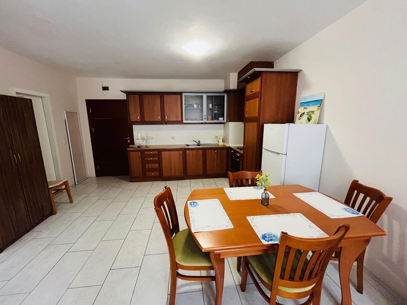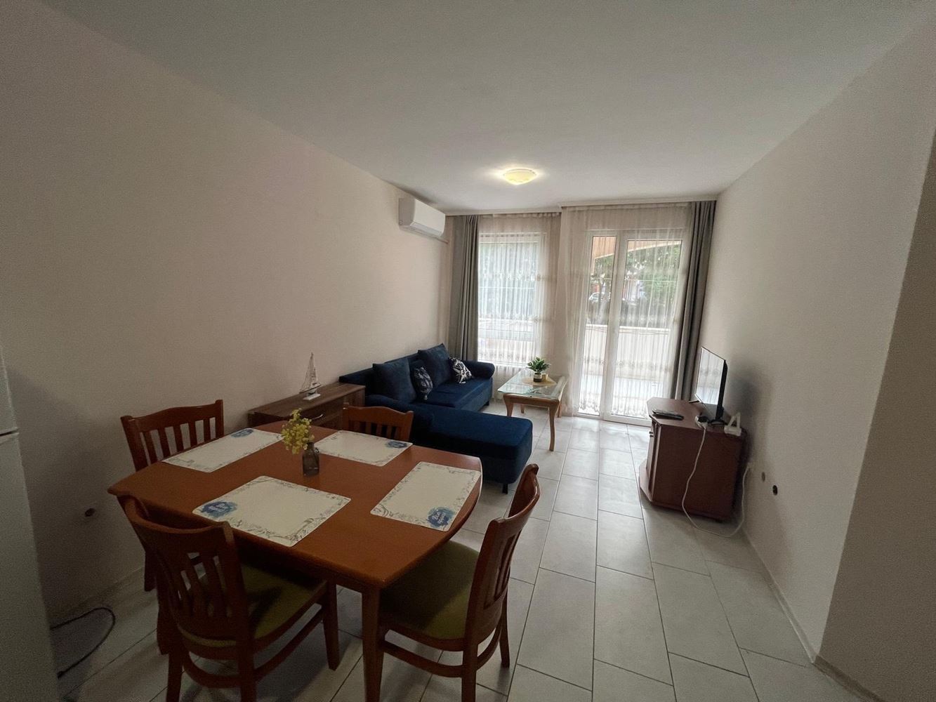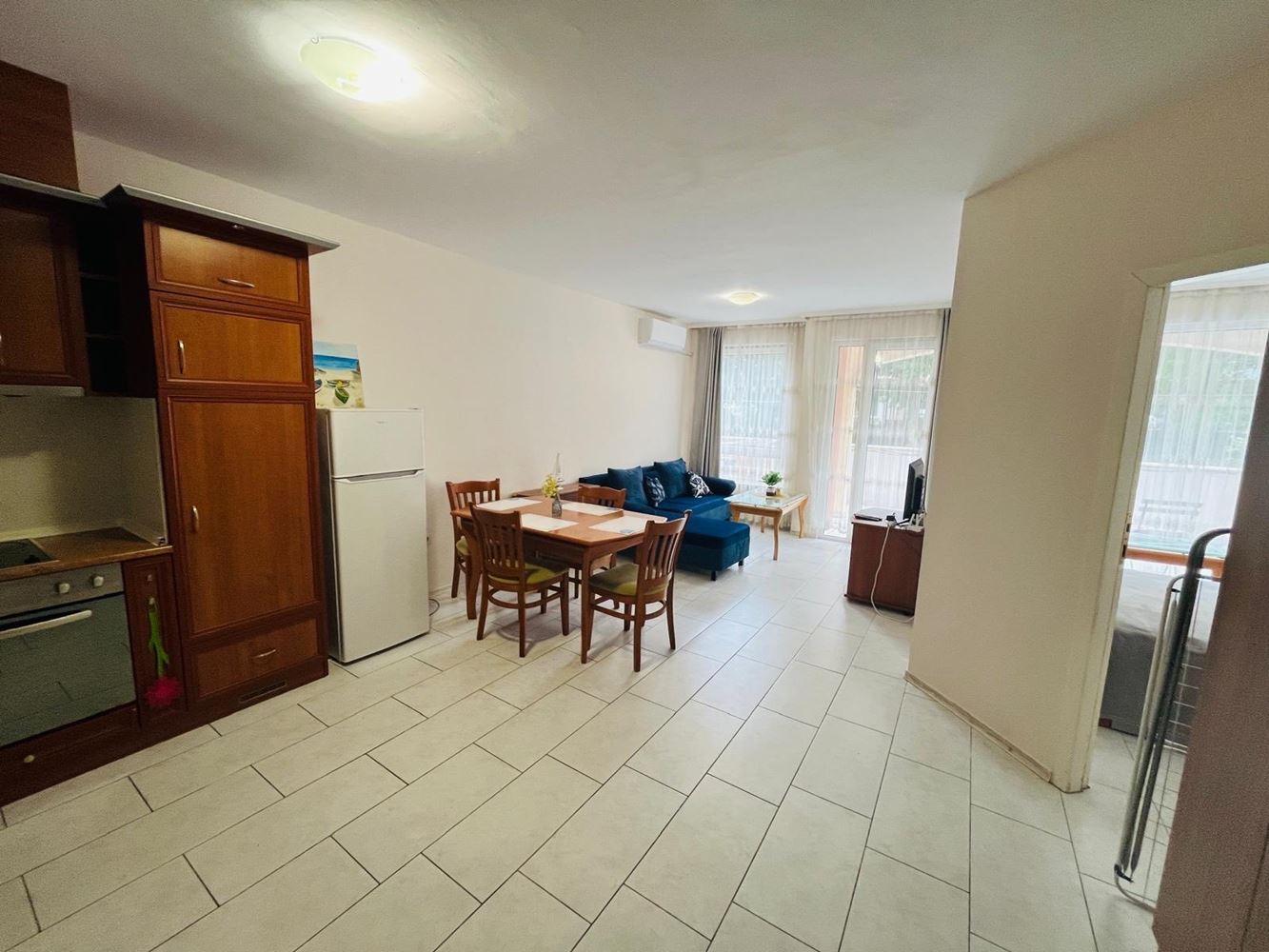 Mieszkanie zachwyca dużym i przyjemnym tarasem, z którego rozciąga się piękny widok na Nesebyr. Ten przytulny kącik na świeżym powietrzu jest idealny na poranną kawę lub wieczorny relaks po intensywnym dniu. Wnętrze jest dobrze zorganizowane – obejmuje komfortową strefę dzienną, funkcjonalną kuchnię, sypialnię i łazienkę. Wszystkie pomieszczenia są w pełni umeblowane i gotowe do zamieszkania.