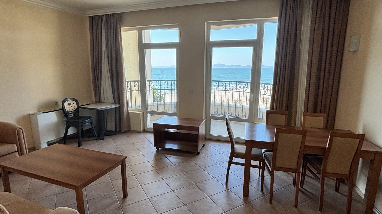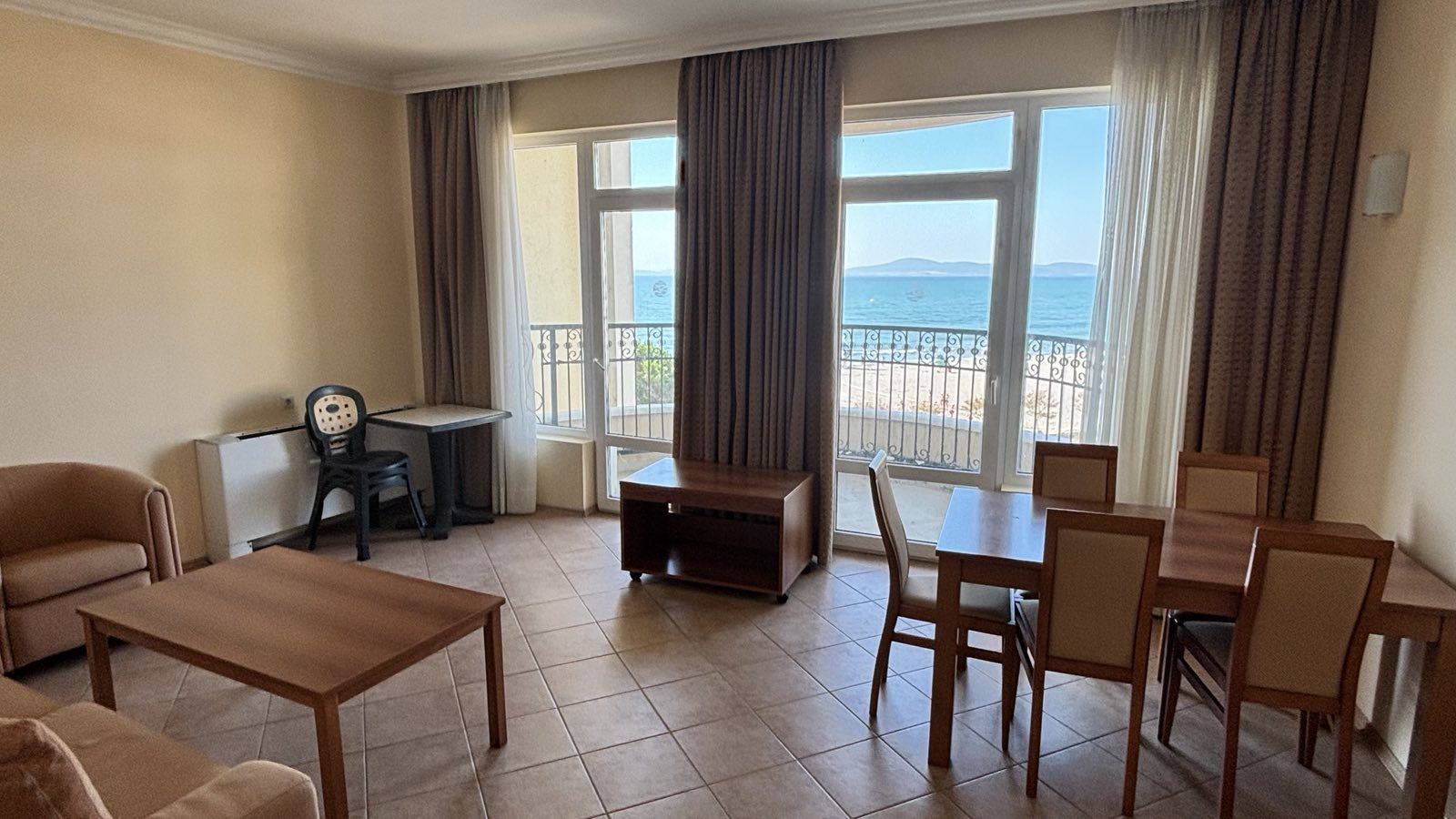 Przestronne dwupokojowe mieszkanie z panoramicznym widokiem na morze w pierwszej linii w Pomorie