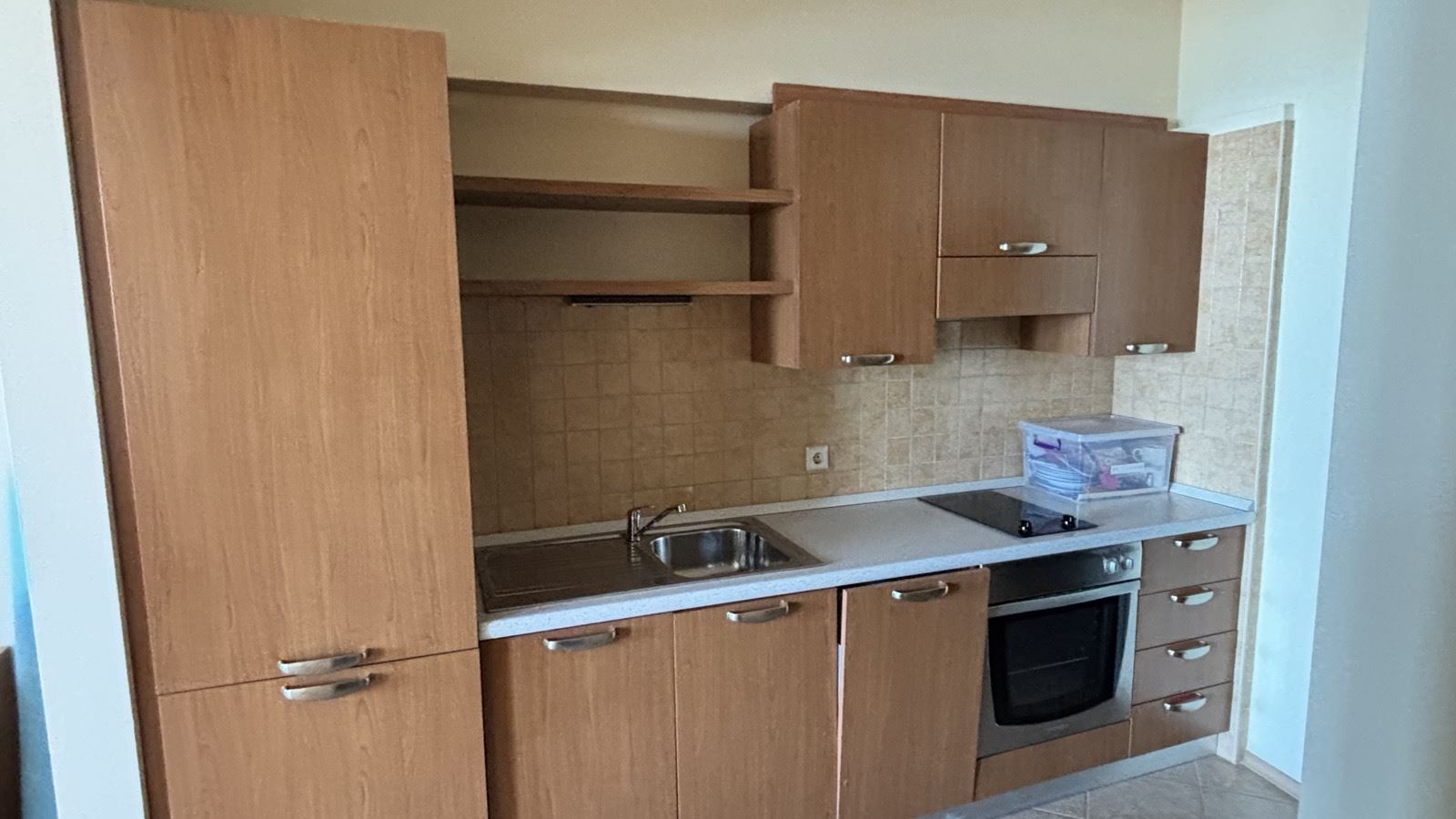 Mieszkanie ma funkcjonalny i wygodny układ, obejmujący przedpokój, przestronny salon z aneksem kuchennym, sypialnię, łazienkę z WC, garderobę i duży taras z widokiem na morze. Wnętrze jest w pełni umeblowane i wyposażone, co pozwala na natychmiastowe zamieszkanie lub wynajem bez dodatkowych kosztów. Mieszkanie cechuje się doskonałym oświetleniem, nowoczesnymi meblami i praktycznym układem, zapewniając komfort i przytulność dla właścicieli.