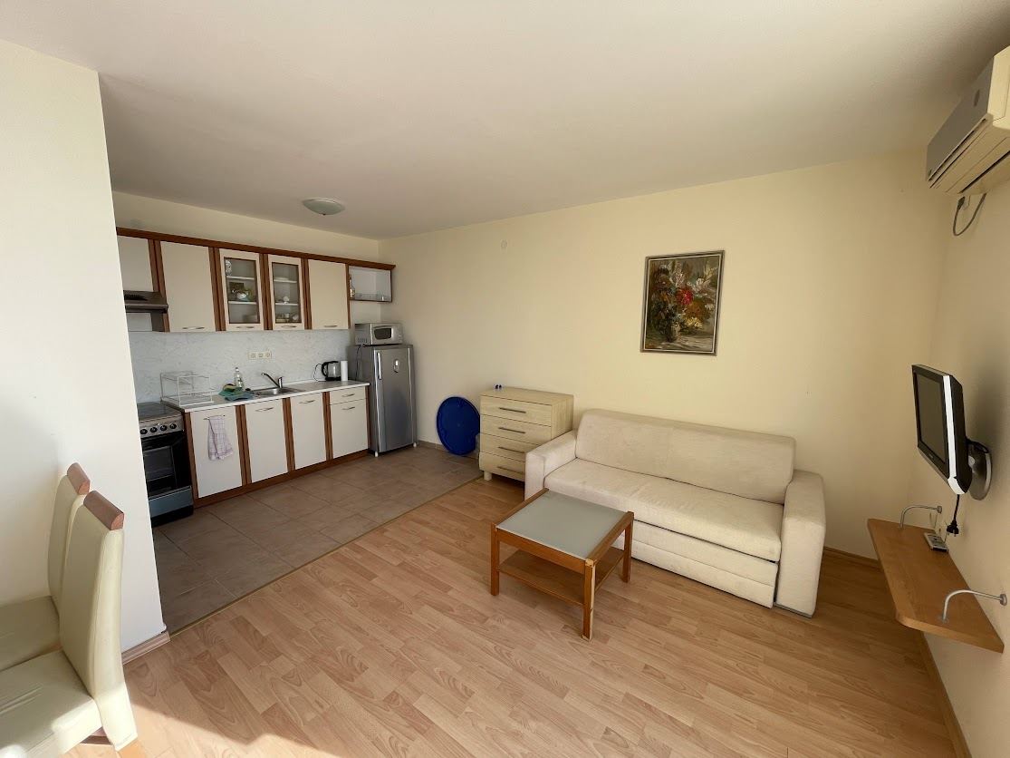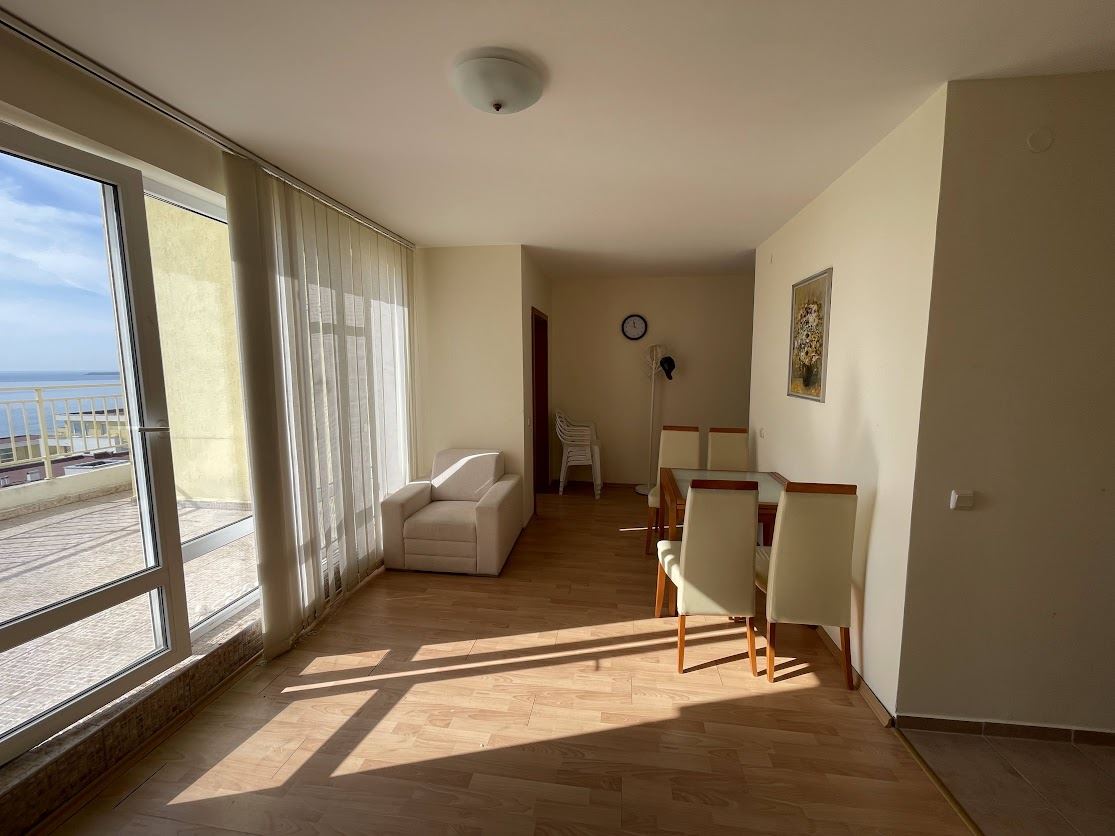 Przestronne dwupokojowe mieszkanie z widokiem na morze w malowniczym kurorcie Sweti Włas, o łącznej powierzchni 76,26 m², to idealny wybór dla osób szukających komfortu i luksusu tuż przy morzu. Mieszkanie oferuje funkcjonalny układ: przytulną sypialnię, przestronny salon z aneksem kuchennym, łazienkę z toaletą oraz duży panoramiczny balkon, z którego można podziwiać wyjątkowe widoki i cieszyć się świeżym morskim powietrzem. W budynku dostępna jest winda, co zapewnia łatwy dostęp.